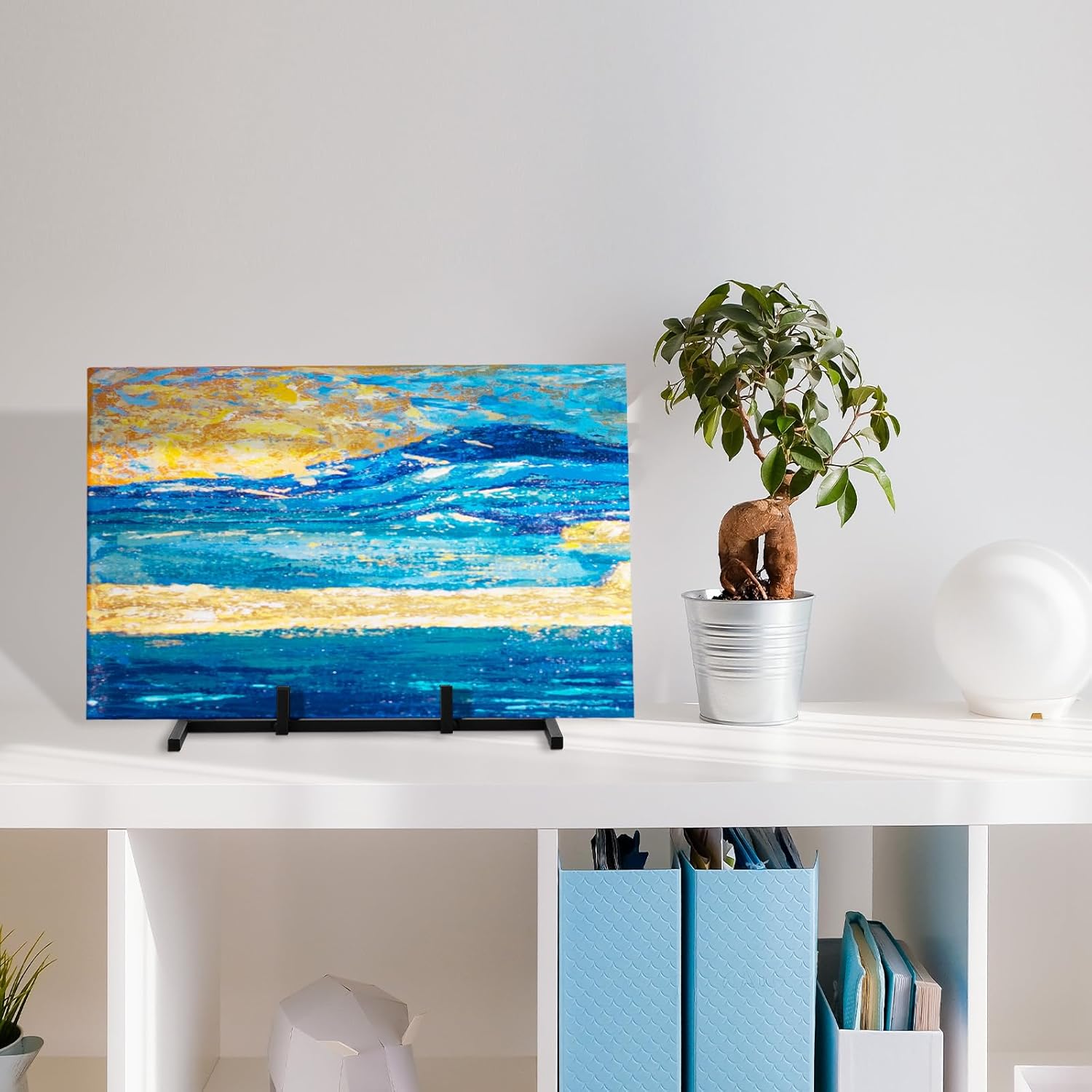 4 Pcs Metal Glass Display Stands Easel for Stained,ceramic Tiles, Plaques, for Picture, Collectibles Ceramic Tiles Photo Office Trade Show Office, or Home(Black,7.87 x 3.94 x 0.98 Inch)