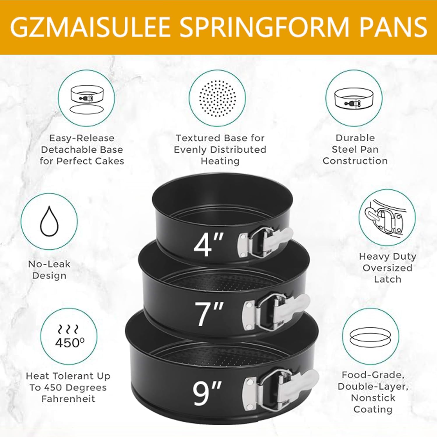 - 【Premium Quality】This springform cake pan set is made of heavy-duty carbon steel, ensuring its durability and long-lasting performance.