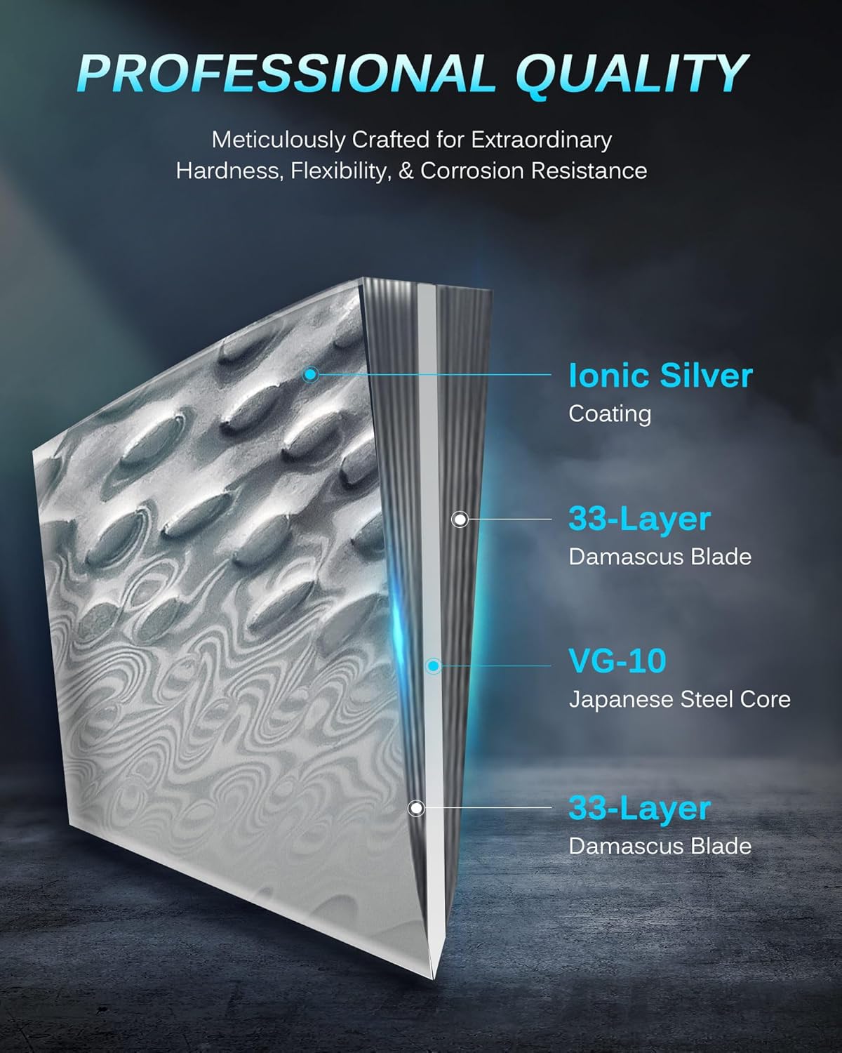- Innovative Protection: Our blade boasts an ionic silver PVD coating to prevent growth of unwanted organic contaminants for extra culinary safety. The provided sheath and case allow you to preserve your knife with care.