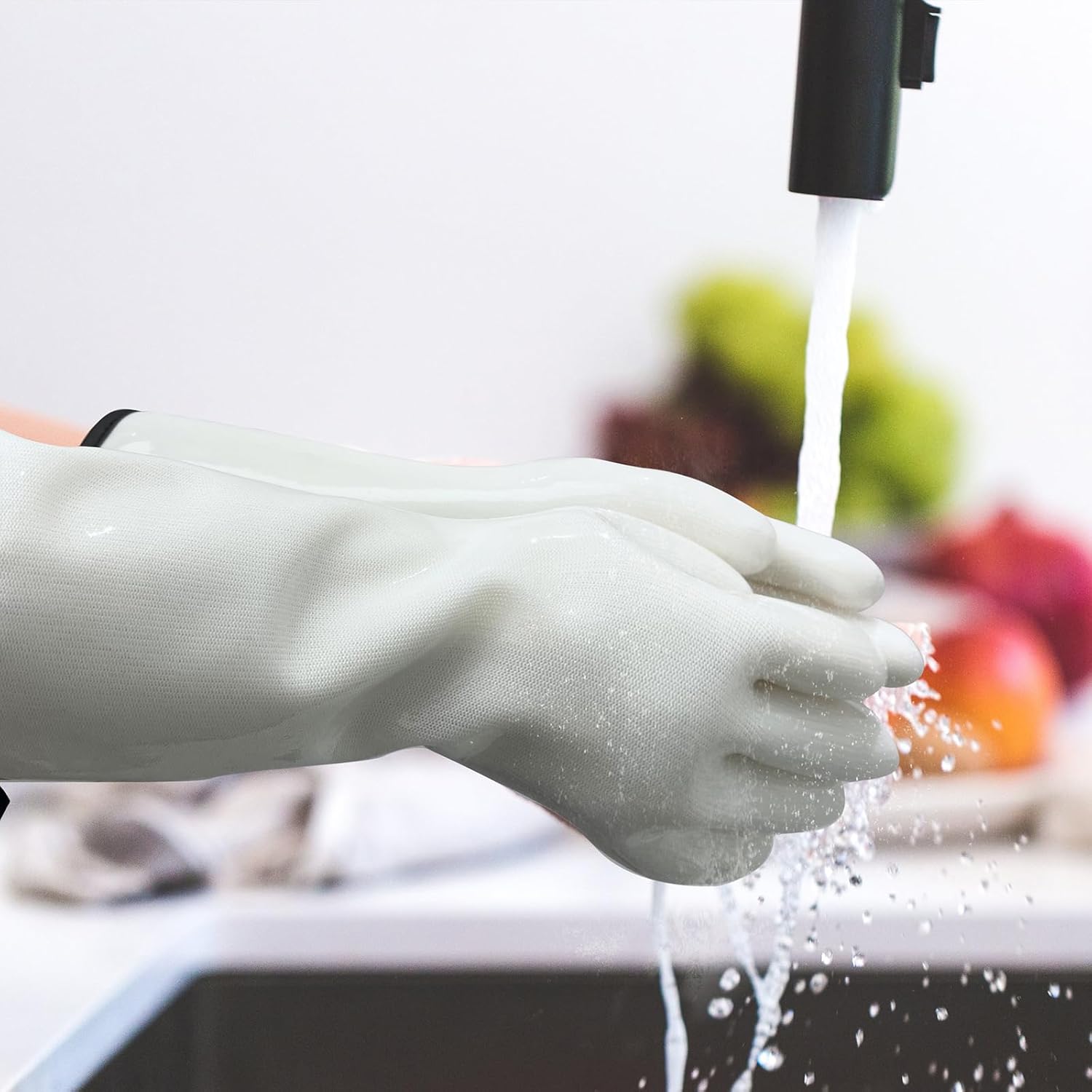 - 100% PURE FOOD GRADE LIQUID SILICONE: Our gloves are manufactured of temperature-resistant liquid silicone, an advanced material that possesses high tensile strength, stands up to daily use, and maintains its performance day after day.