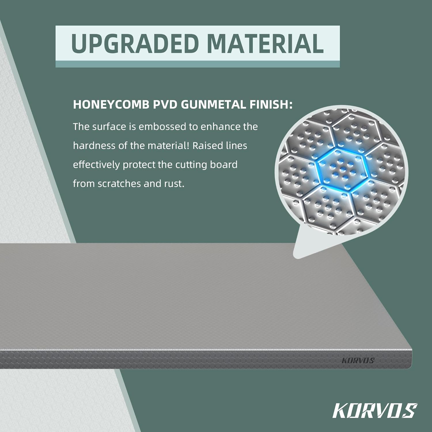 KORVOS 304 Stainless Steel Cutting Board, Large Size 23.62"x19.68" Heavy Duty Cutting Boards, Low Noise Chopping Board, Anti-Scratch Surface for Meat, Vegetables&Baking, Honeycomb Pattern