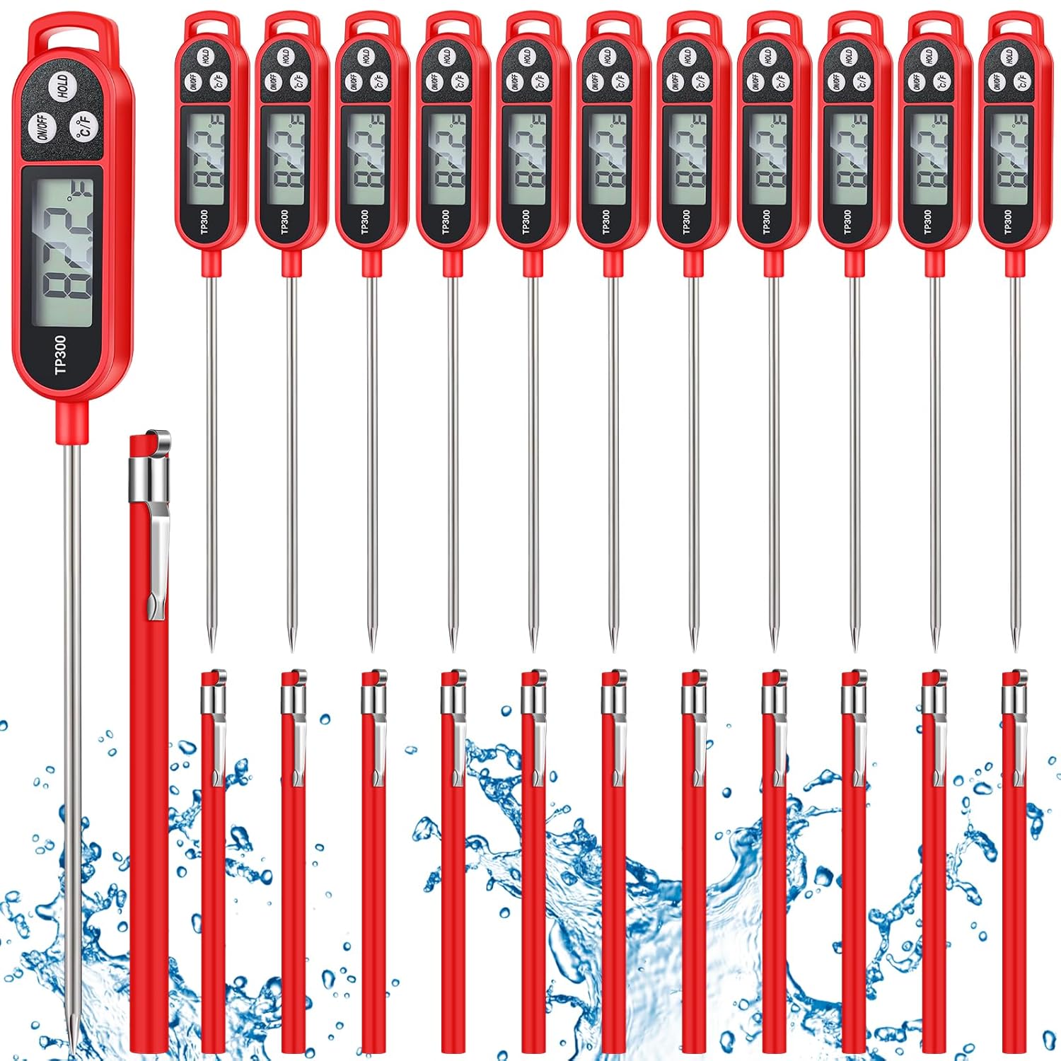 12 Pcs Meat Food Thermometer Food with Probe Water Liquid Instant Read Digital Thermometer Kitchen Cooking Supplies for Cooking BBQ Milk Yogurt (Red)