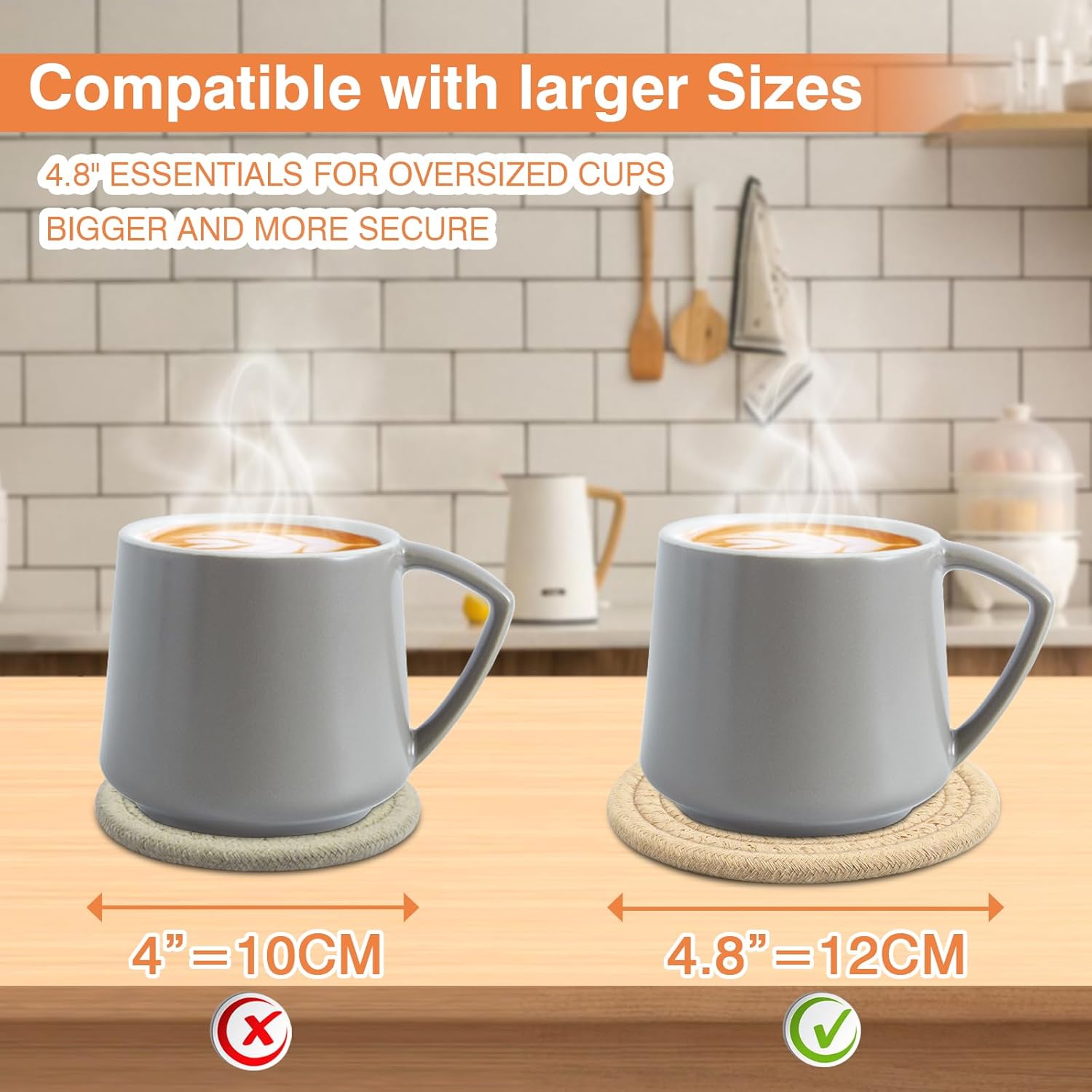 - 【Generously Sized for Daily Use】 Each coaster measures 4.8 inches in diameter—larger than standard 4.3" ones—providing better coverage for oversized mugs, glasses, tumblers, and plant pots. Ideal for desks, dining tables, and nightstands