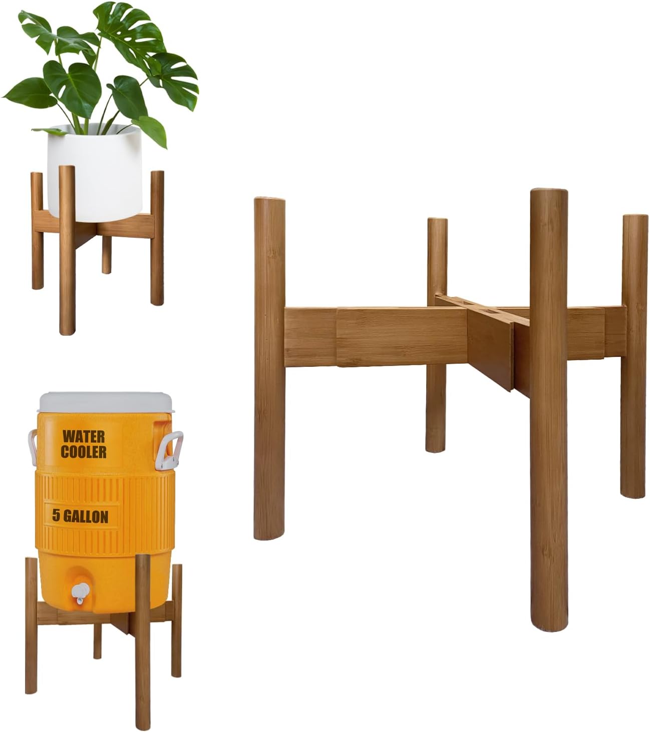 - MULTI-FUNCTIONAL USE - Place any jar with tap on this Minboo bamboo stand to raise it from the surface and make it easier to use and clean. It can be used not only as a water or drink dispenser stand for parties, but also be used as a stand for water filter pitcher, 1-5 gallon water container, water cooler, laundry detergent dispenser, indoor plants, dog bowls, etc.