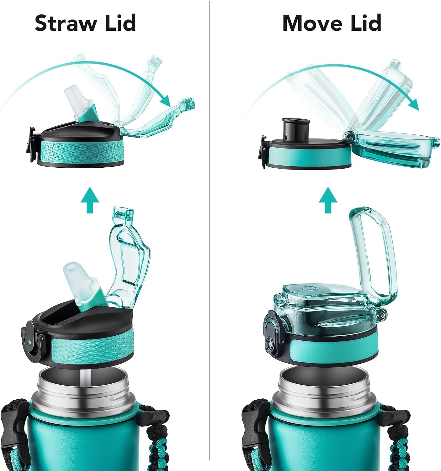 - Insulated water bottle 24 oz: 24 oz insulated water bottle has a matte finish and comes with 2 lids (Lid with Straw/No Straw) and a Paracord handle for easy portability; Its wide mouth makes it easy to fill, pour, and clean, and the leak-proof cap ensures worry transport.