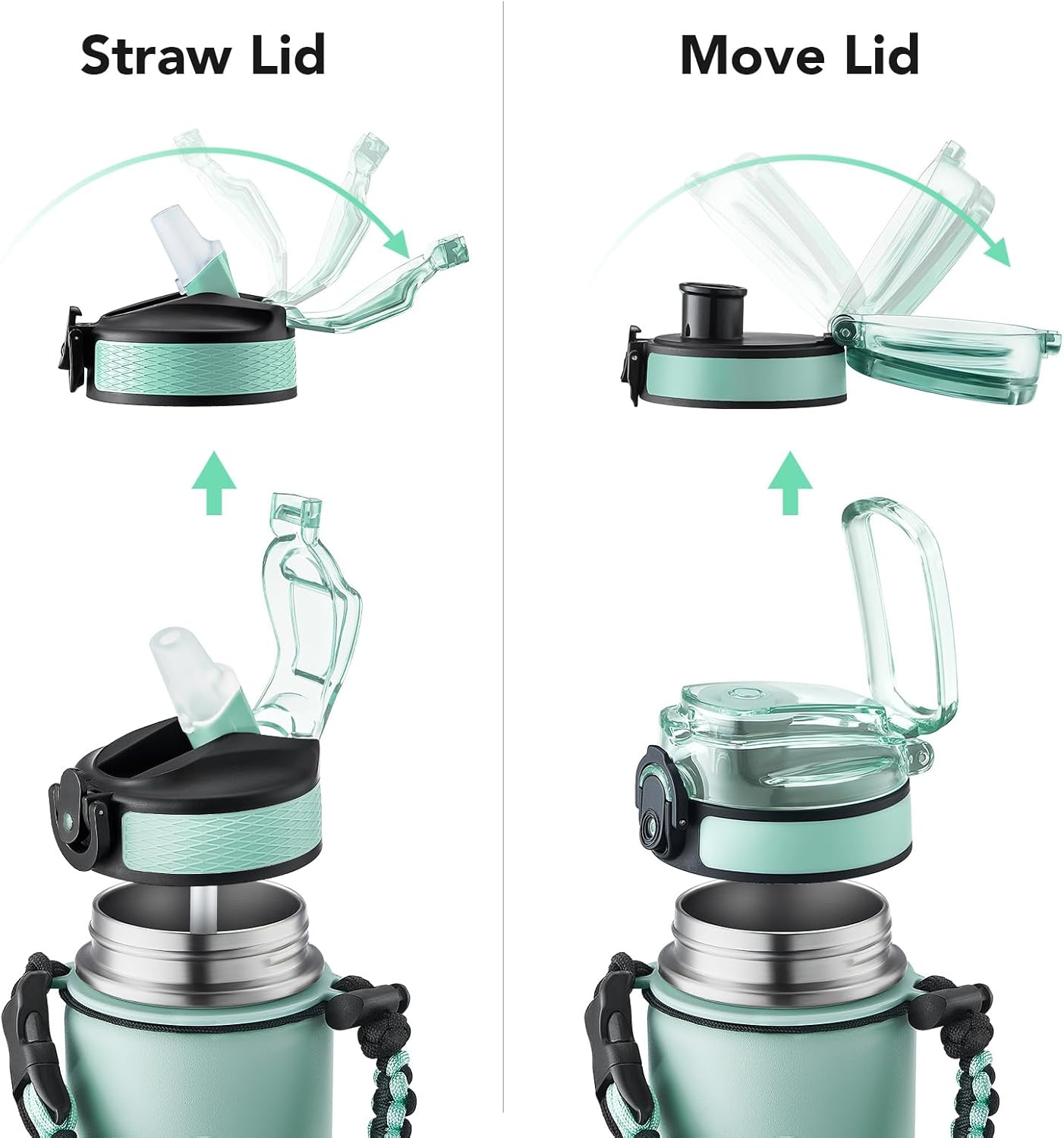 - Insulated water bottle 24 oz: 24 oz insulated water bottle has a matte finish and comes with 2 lids (Lid with Straw/No Straw) and a Paracord handle for easy portability; Its wide mouth makes it easy to fill, pour, and clean, and the leak-proof cap ensures worry transport.