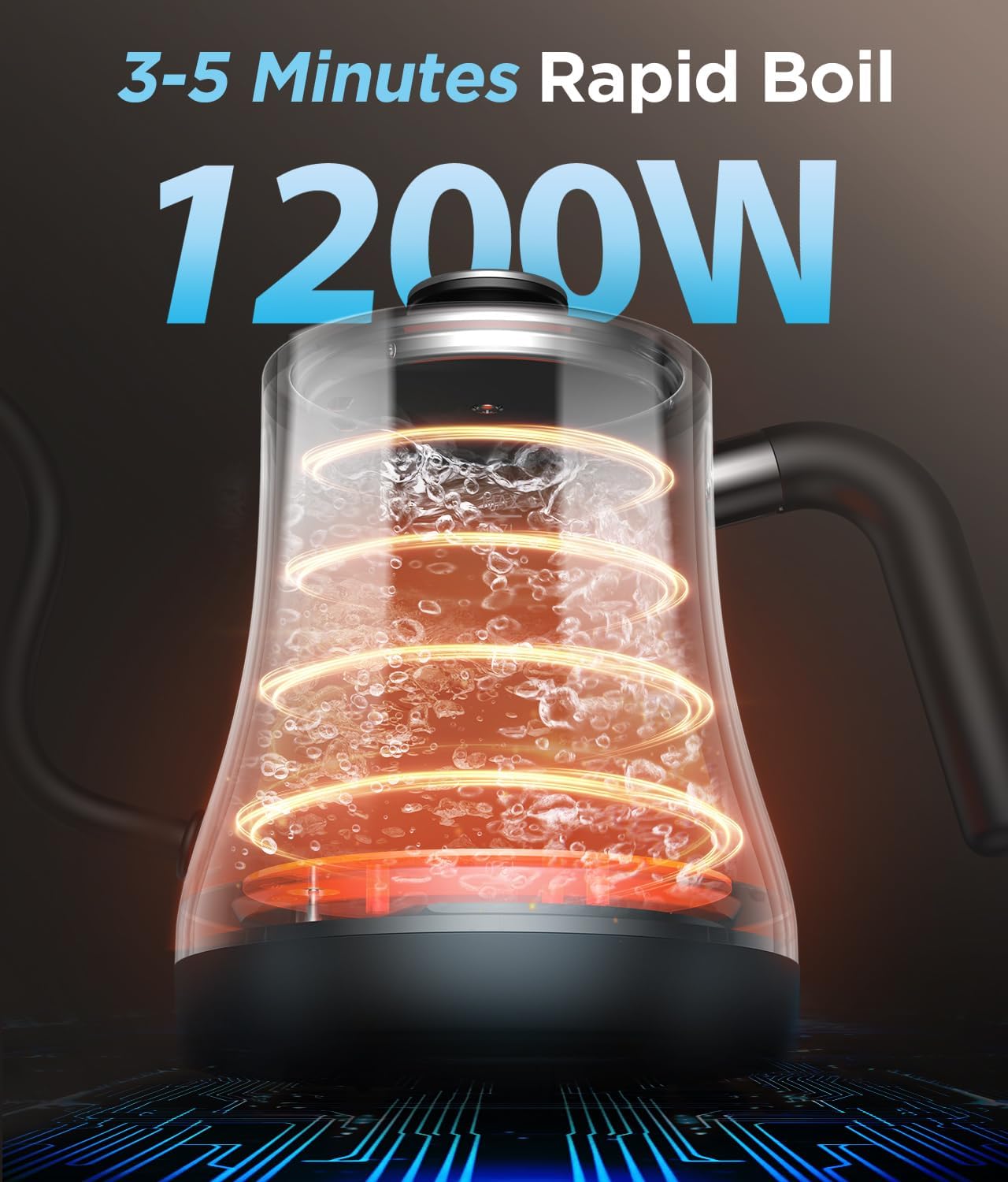Gooseneck Electric Kettle with Temperature Control, 27oz/0.8L Fast Heat Electric Kettle for Pour Over Coffee/Tea, Auto Shut Off & Boil-Dry Protection, 4hrs Keep Warm, Stainless Steel Inner,Matte Black