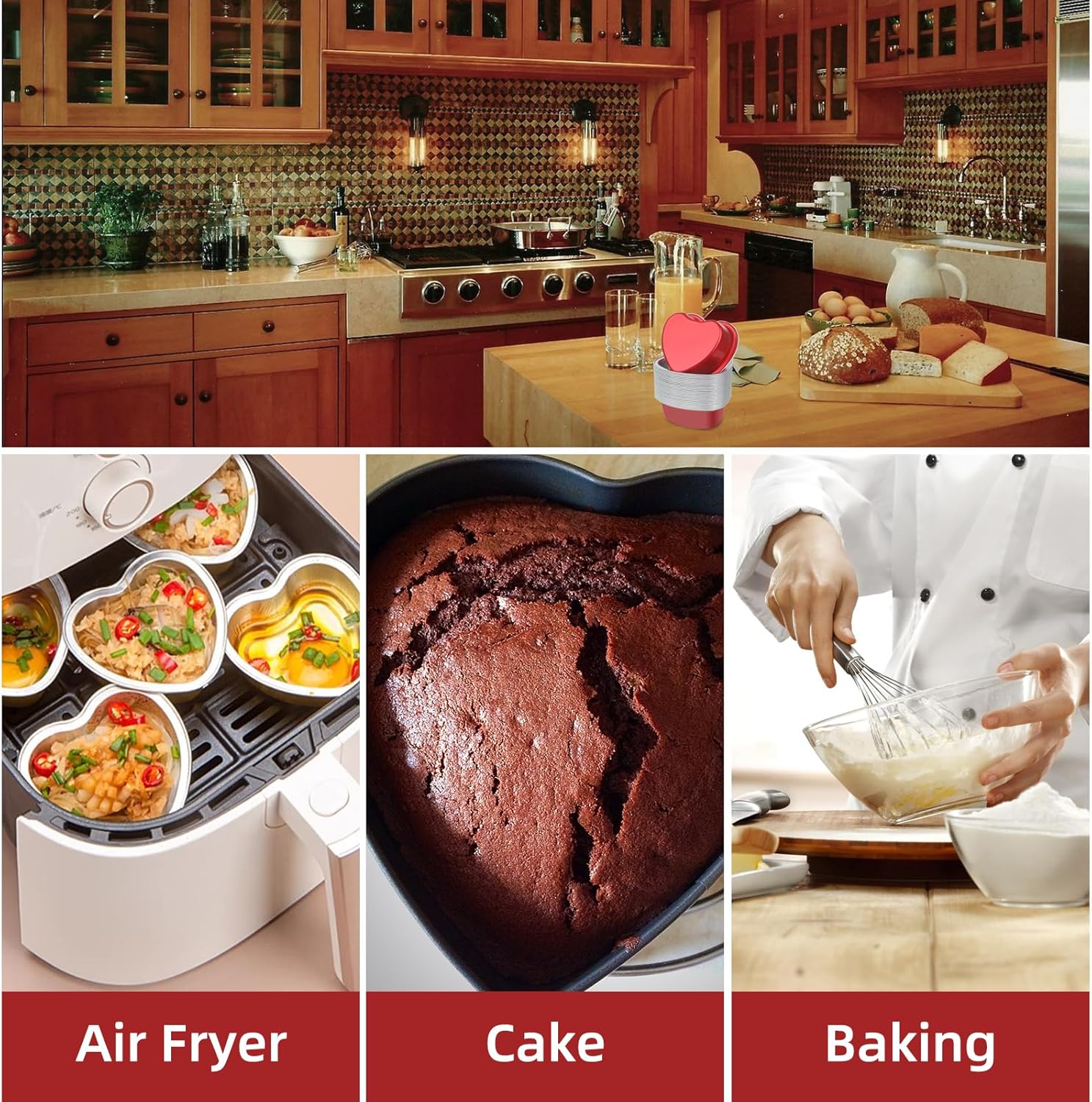 - 【Material】The samll heart shaped pan is made of high-quality aluminum foil, which is non-stick and easy to clean. The pan is suitable for use in ovens, air fryer and refrigerators, and can be used to bake a variety of foods, including cakes, cookies, pastries, and more