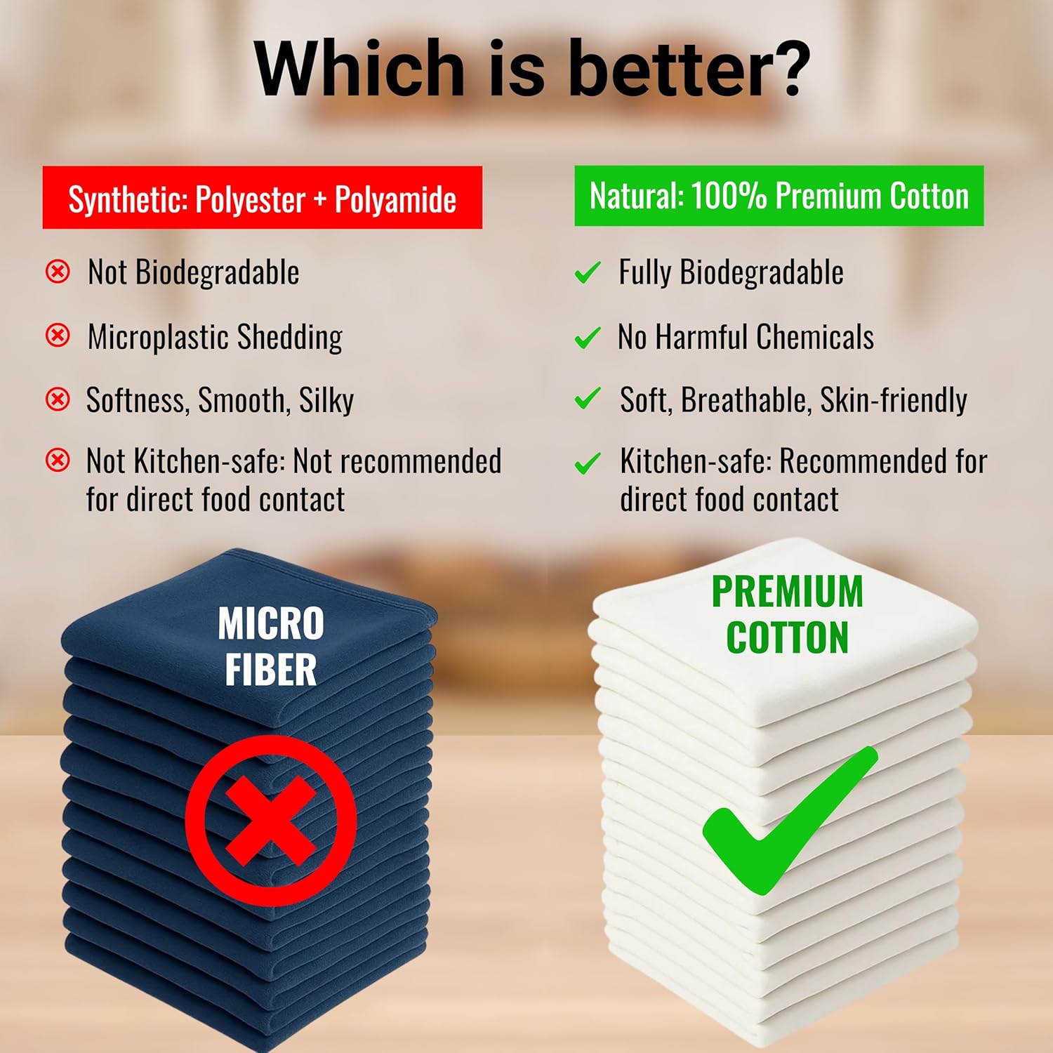 - MULTIPURPOSE: Their lint-free pure ring-spun cotton composition makes them perfect for drying glassware, hands and surfaces. Moreover, they excel at tasks like cheese straining, salad spinning, and even serving as reliable dough covers for baking.