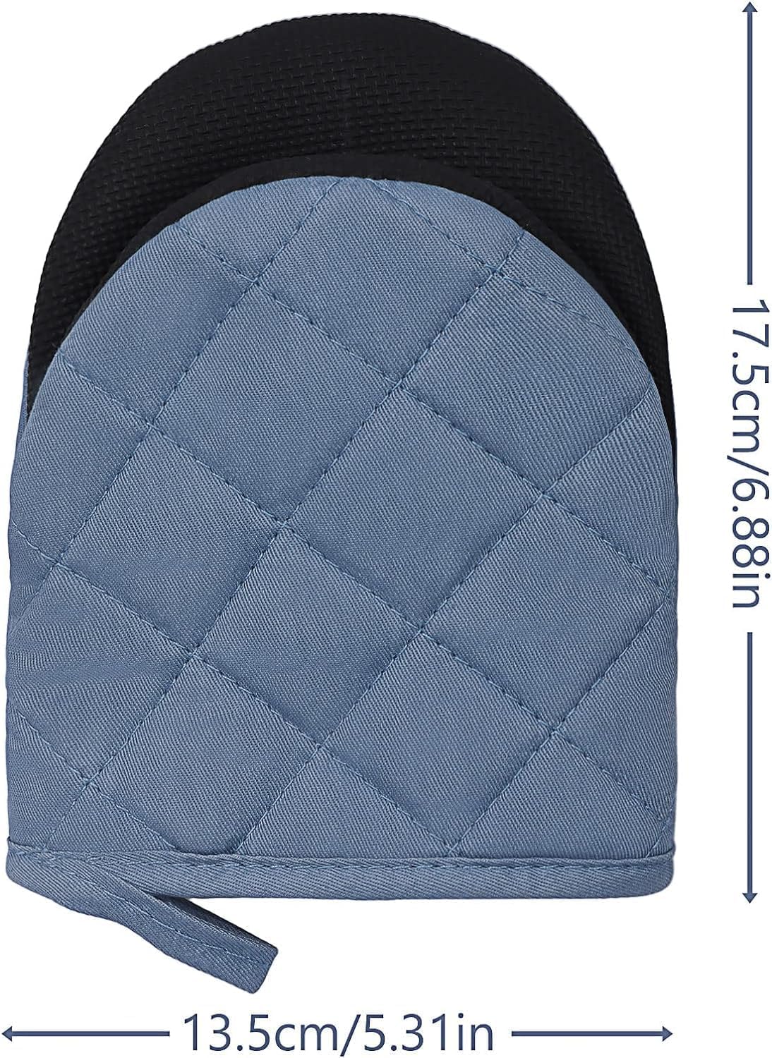 Short Oven Mitts, Heat Resistant Silicone Kitchen Mini Oven Mitts for 500 Degrees, Non-Slip Grip Surfaces and Hanging Loop Gloves, Baking Grilling Barbecue Microwave Machine Washable, 1 Piece