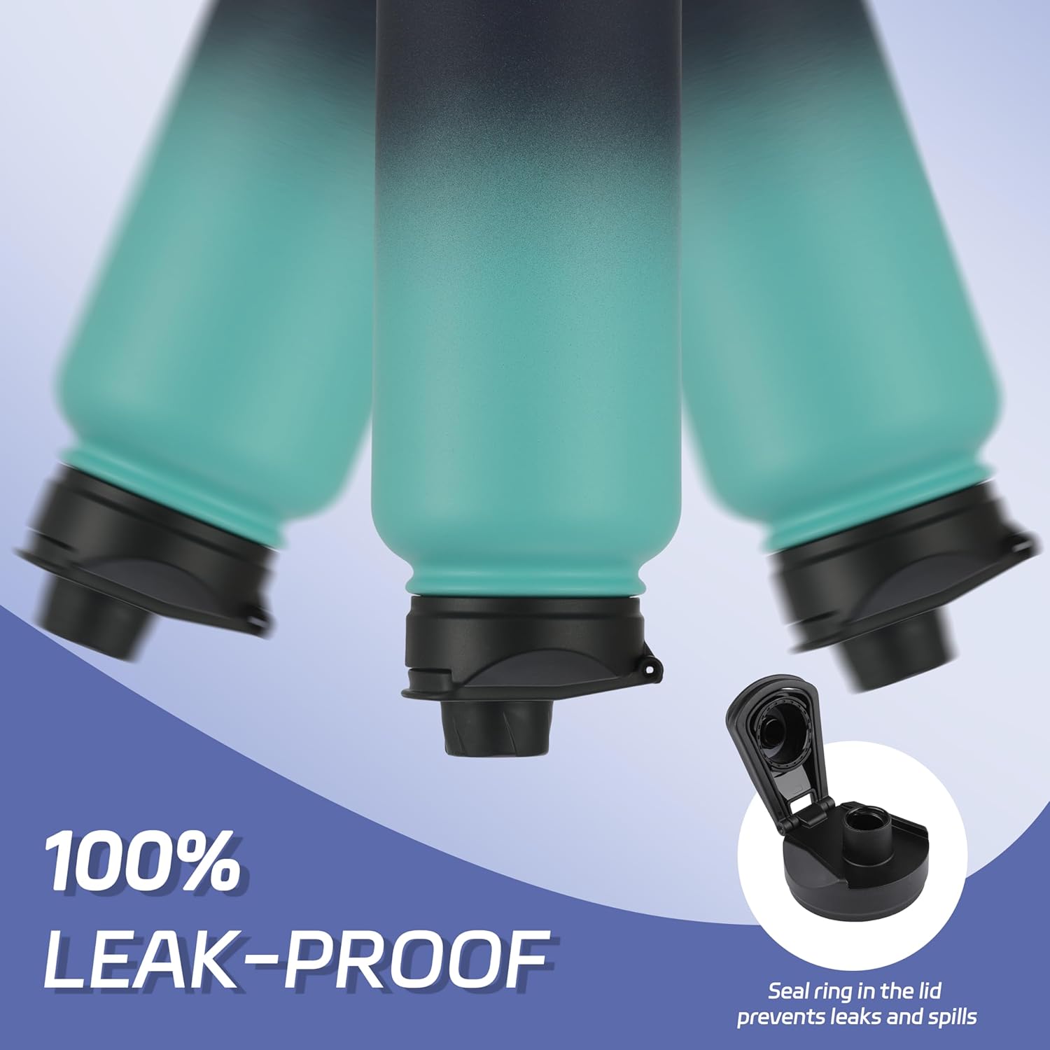 HASLE OUTFITTERS 40oz Stainless Steel Water Bottle, Vacuum Insulated Double Walled Leak Proof Sports Water Bottle with 2 Lids (Straw and Spout Lid) Keep Cold and Hot(Green Blue Gradient,1)