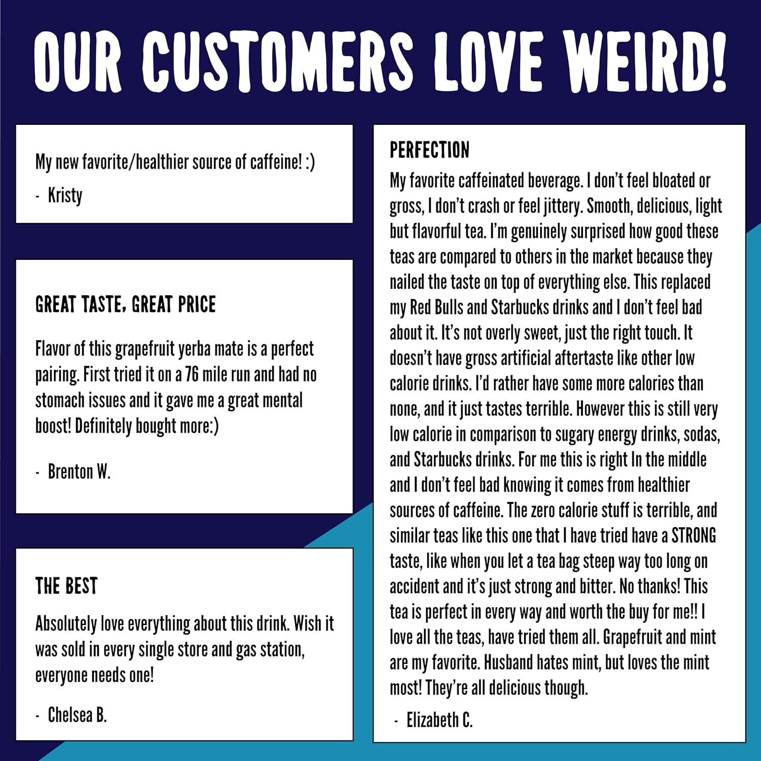 - 🌿 Certified USDA Organic – Ingredients You Can Trust Made with high-quality, organic ingredients because what you put in your body matters. All Drink Weird teas and yerbas are non-GMO, vegan, and gluten-free.