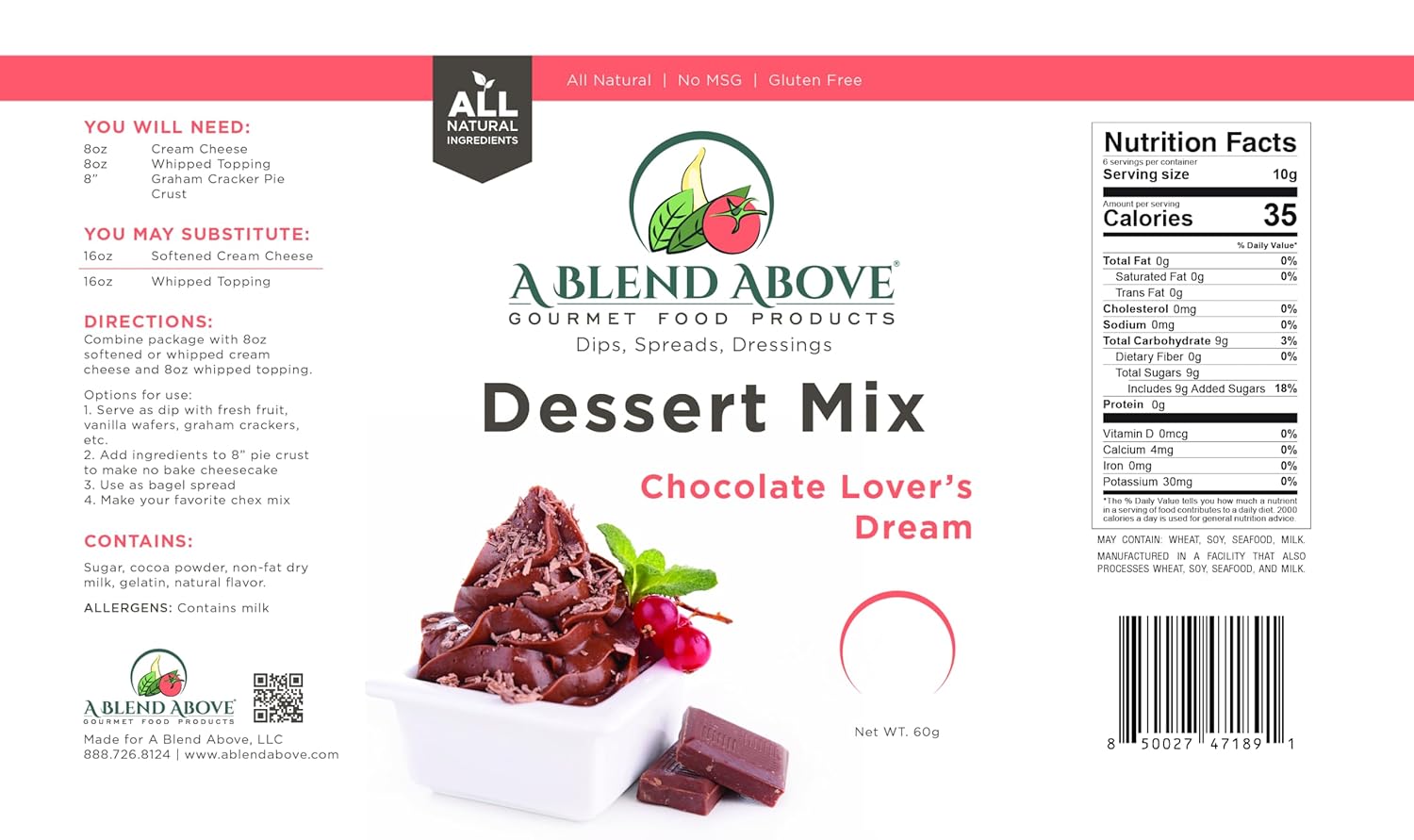 A Blend Above Chocolate Lover's Dream Pie Mix - No Bake, All Natural, Vegan, Gluten Free, No MSG - Instant Dessert Mix, Fruit Dip, Bagel Topping, Frosting, Cheesecake Filling - Makes 16 Oz (Pack of 3)