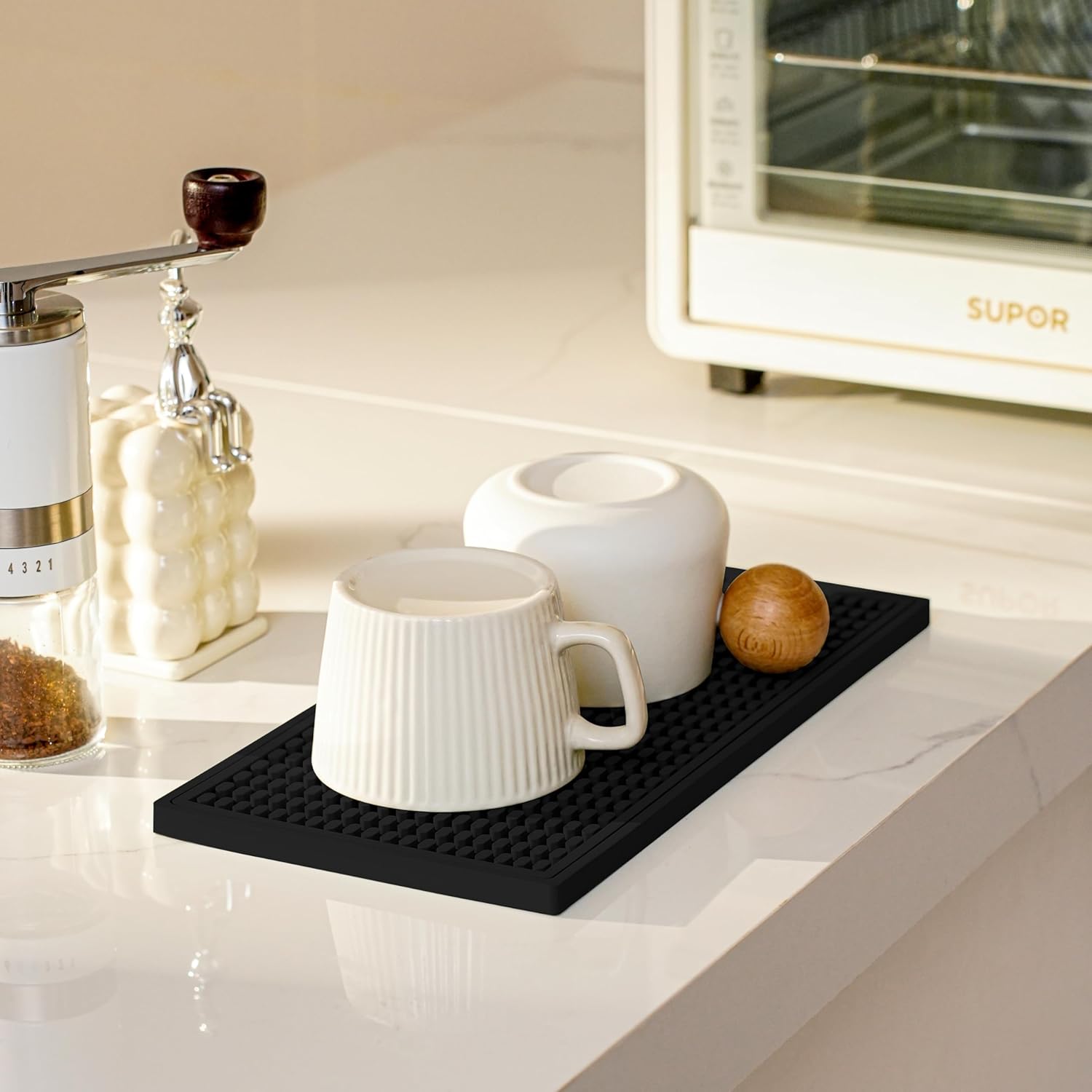 - HIGH QUALITY MATERIAL: Our black bar mat is made from premium quality materials that have been carefully selected to ensure superior durability and long-lasting performance. Whether it's in a busy bar environment or a cozy home coffee corner, this mat is built to last.