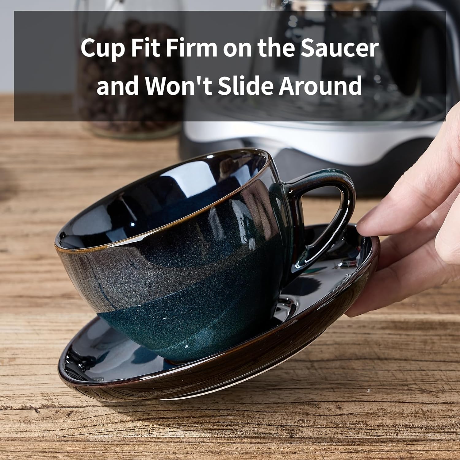 - Safe for Dishwasher,Microwave Safe----The sleek ceramic glaze makes it easy to clean the coffee stains.This rustic cafe cups set gives off an uncomplicated and polished allure.It's perfect for serve up piping hot cups of coffee, tea, signature lattes, and other warm, indulgent beverages.