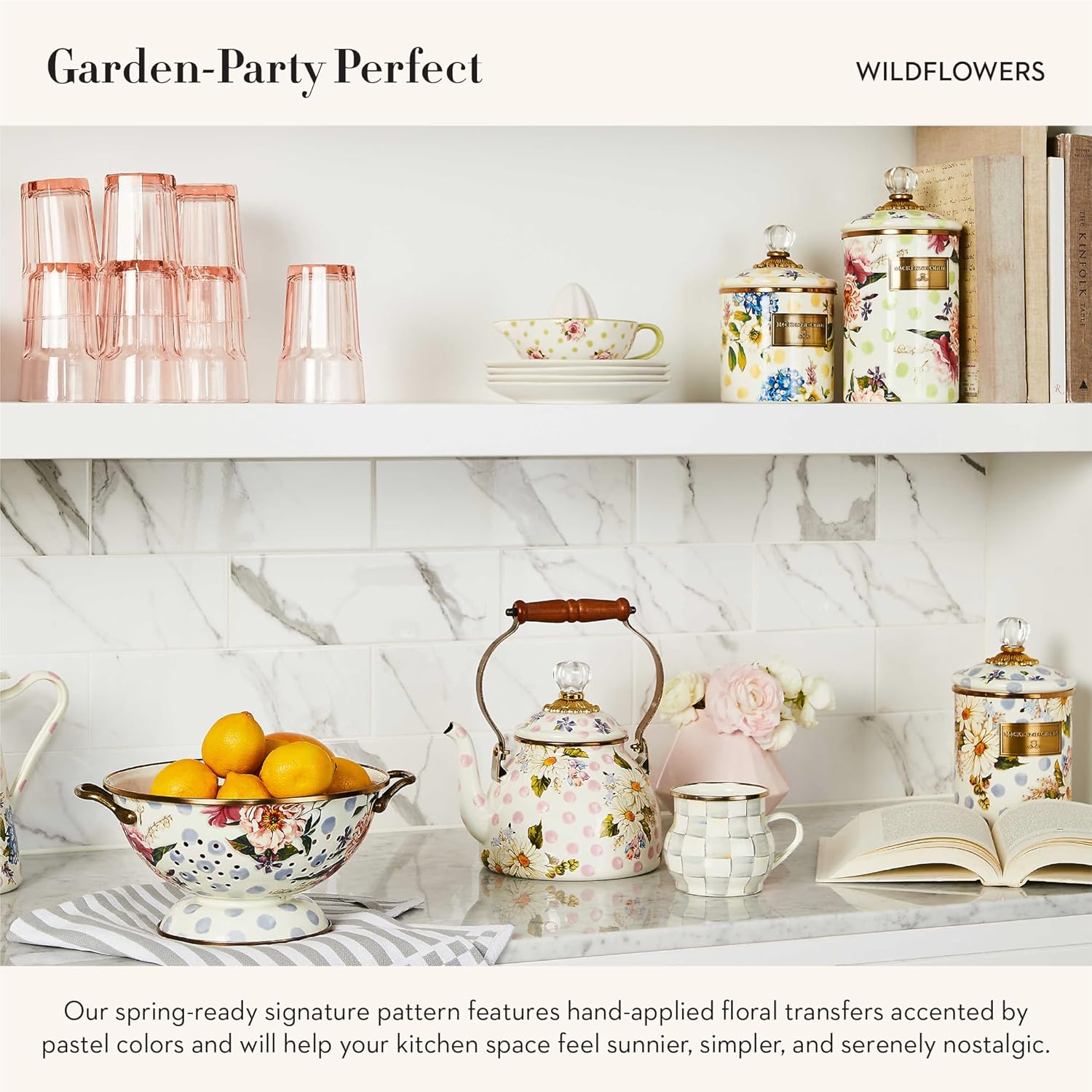MACKENZIE-CHILDS Wildflowers Enamel Canister, Floral Kitchen Storage Container with Lid, Large