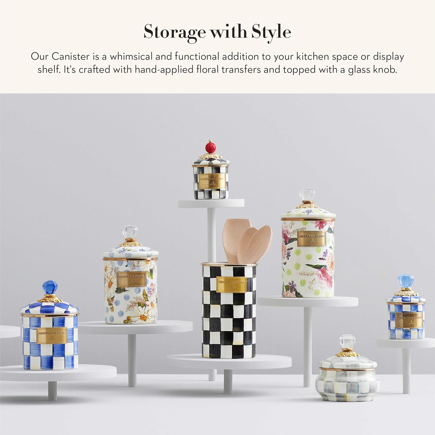 MACKENZIE-CHILDS Wildflowers Enamel Canister, Floral Kitchen Storage Container with Lid, Medium