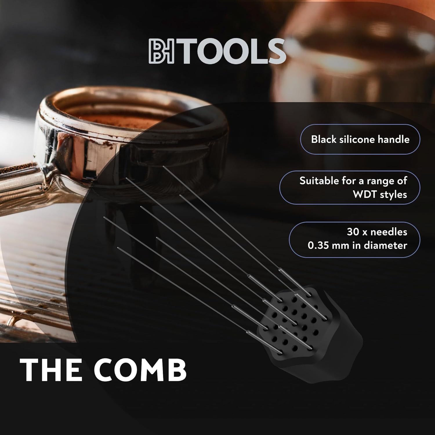 - IMPROVES CONSISTENCY: Our take on the Weiss Distribution Technique, one of the longest-standing expression distribution methods. The BH Tools Comb allows you to fine-tune the needle spacing for precise coffee distribution to suit your grind.