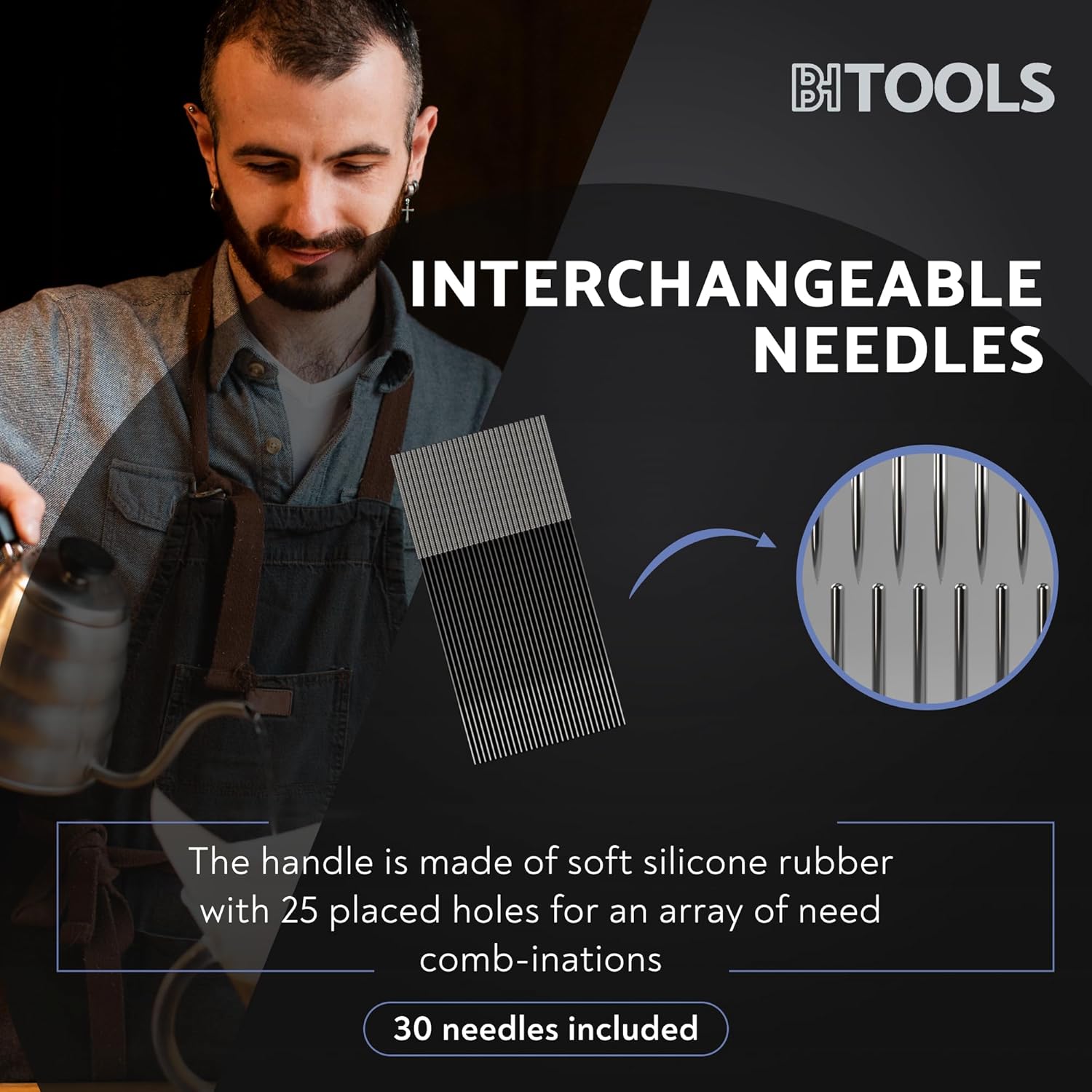 - FOREVER MATERIALS: Crafted for durability, indestructible silicone rubber handle of 0.35 mm diameter. Ideal for effortlessly breaking up coffee clumps. It is paired with food-safe 501 stainless steel needles that are both corrosion-resistant and designed to last.
