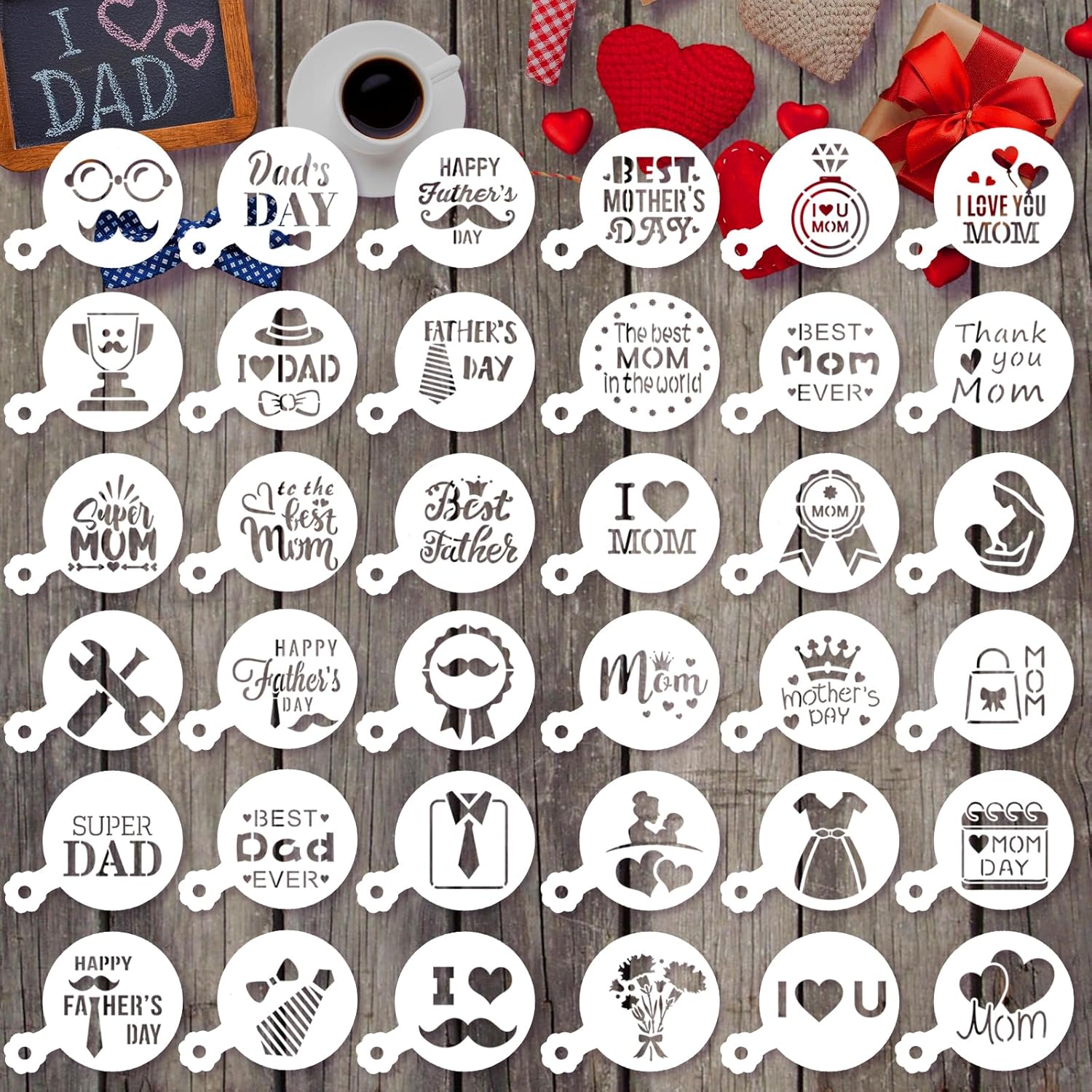 - Show Your Heart: We bring you a set of exquisite cookie stencil template. Each Mother’s Day cookie stencil is carefully designed and includes a variety of patterns, aiming to bring creative inspiration to coffee art lovers and housewives. Whether preparing a cup of coffee for your father or mother, these cupcake stencils will definitely add warmth and affection to your drink