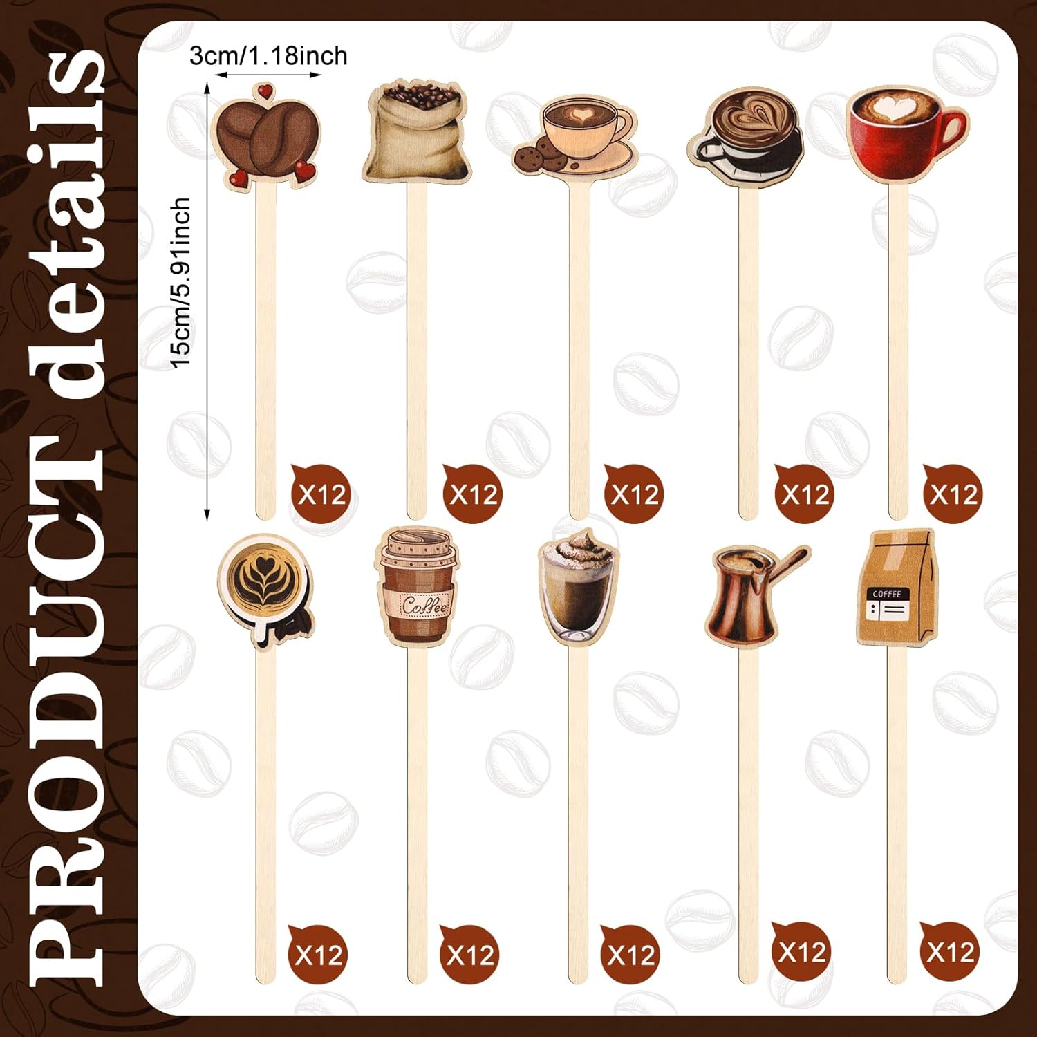 - Creative Pattern Design: these coffee stir sticks have different coffee patterns printed on the round handles, the beautiful patterns can add a different kind of fun to your party and make your guests spend a memorable and enjoyable holiday