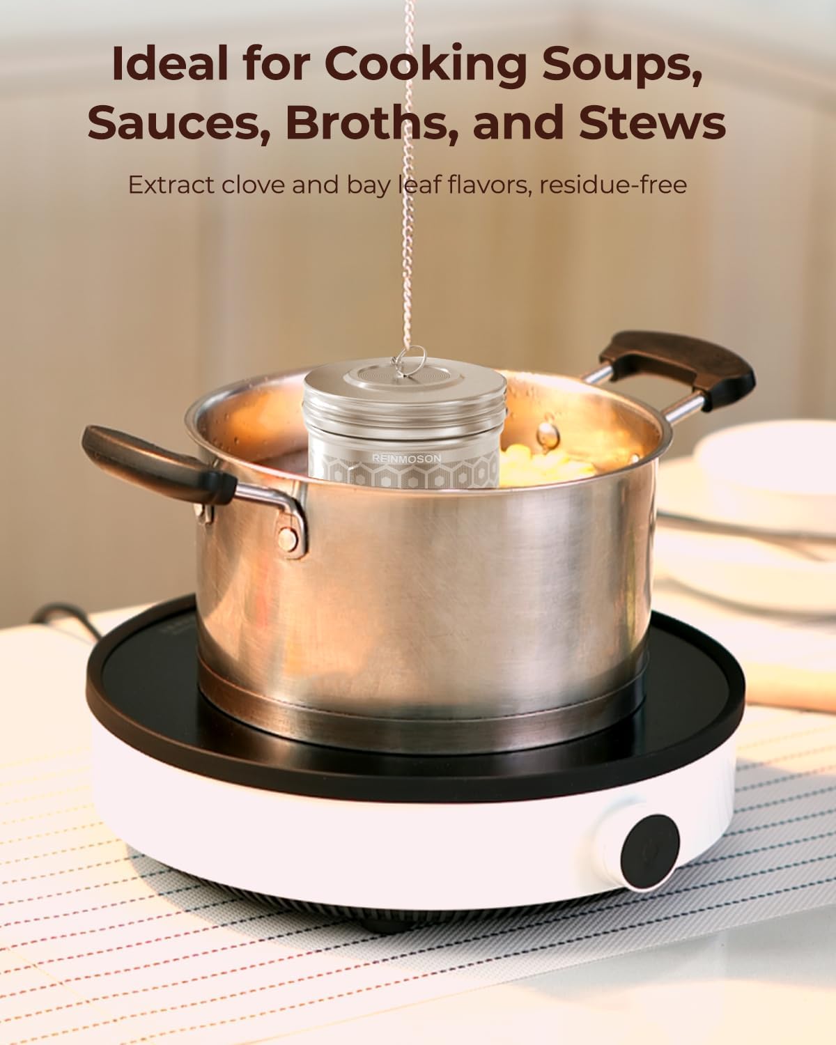 - Wide Application: With an Extended 7.7'' chain with a hook, the large tea steeper can catch securely on any rim of large pitcher, pan, pot, tea kettle, or teapot. [Notice]: 3.2" diameter of the lid. We have 4 various sizes options for different brewing applications. Please check if the large tea strainer fits your containers' opening.