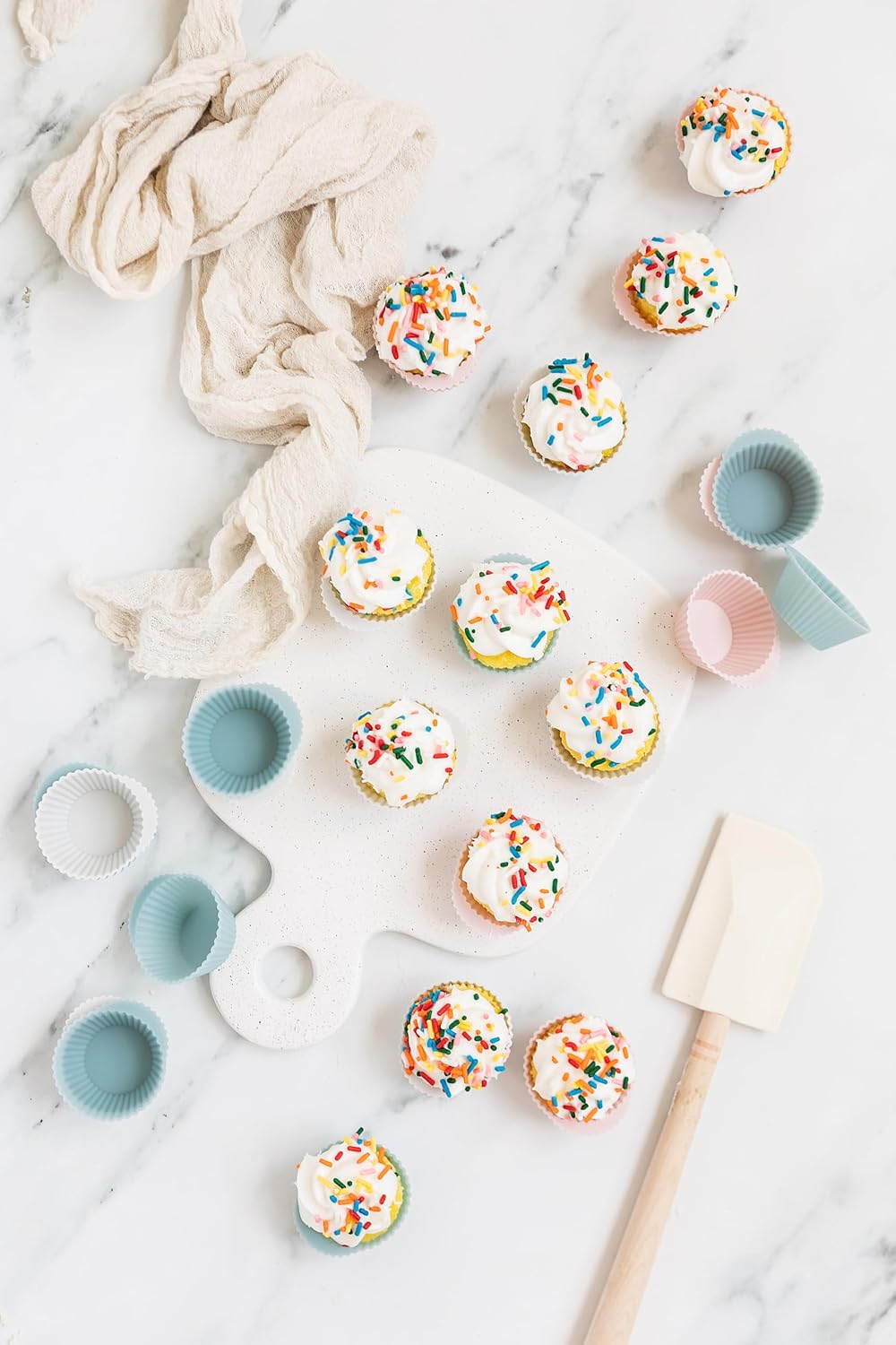 - INCLUDES 24 regular sized baking cups, 12 jumbo baking cups, and 24 mini baking cups in Dusty Rose, Dusty Blue, and Pearl Gray colors