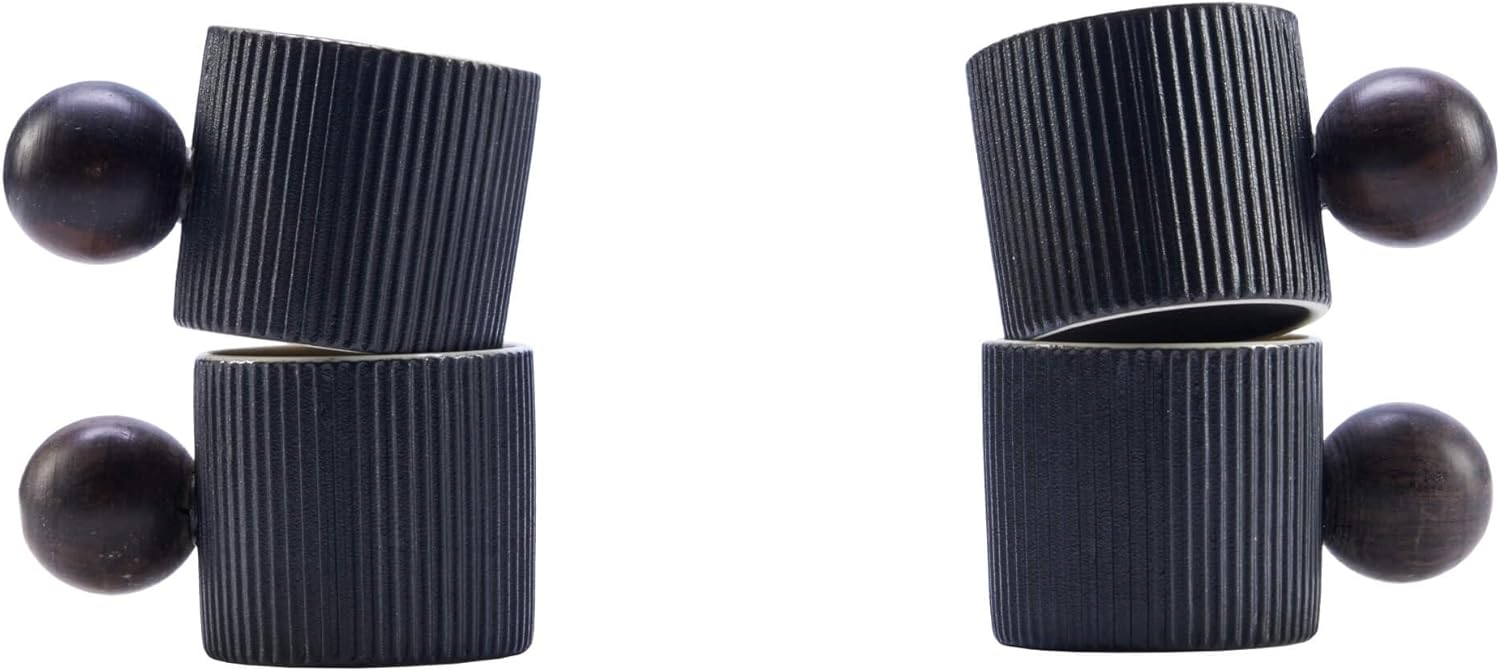 Ceramic Mini Espresso Cups Demitasse Cups with Round Wooden Handle Vertical Stripes Tea Cups (black, 4pcs)