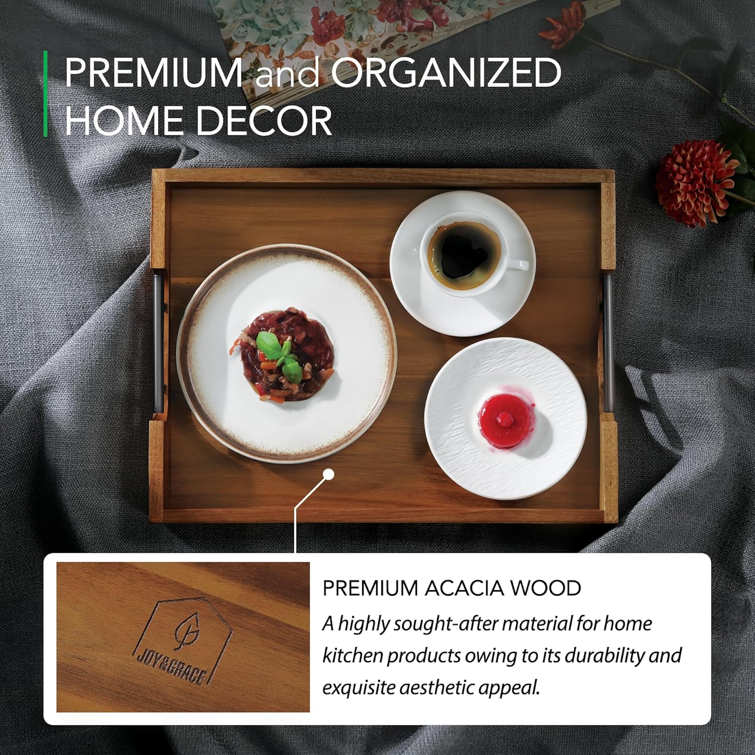 - Joyful and Elegant: With rich wood tones and craftsmanship, this serving tray adds warmth to your table, ottoman, or coffee table settings