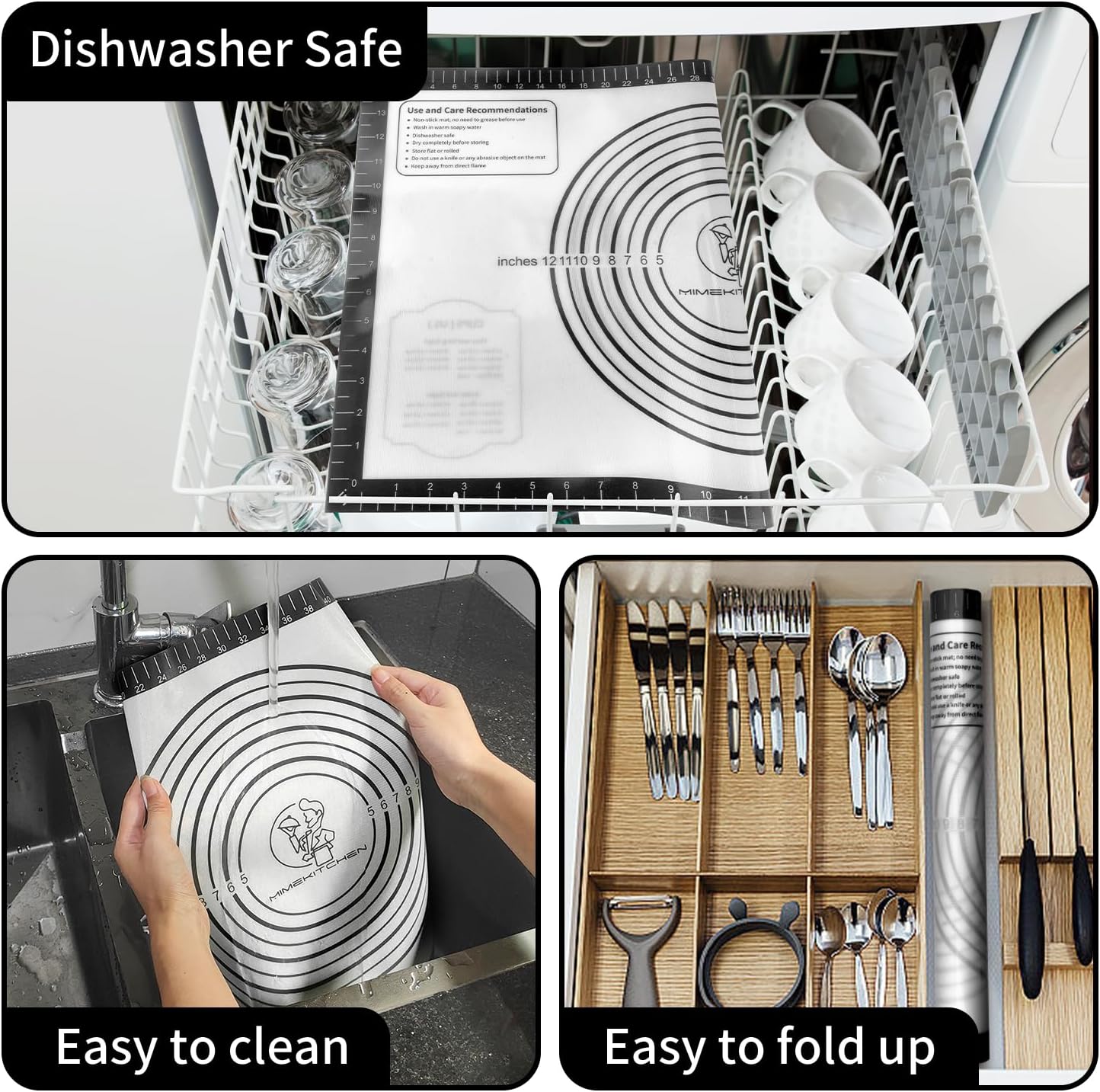 - ใ๐๐๐๐๐๐๐ ๐๐๐๐๐๐๐๐ ๐๐๐๐๐๐ ๐๐๐ใ: Mimekitchen pastry mat consists of multi-layers of silicone and fiberglass to reinforce the mat. It wonโt rip or roll up at the edges, and very hard to crinkle or slide around as you roll the dough. It is more durable than regular slim silicone pastry sheet.