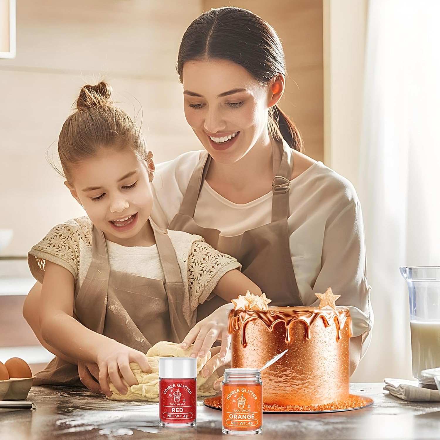 Cherrysea Edible Glitter for Drinks Cocktails Food Grade Edible Drink Shimmer Powder for DIY Champagne Beverages Wine 2 Colors Vegan Edible Luster Dust Set 4g/Bottle Gluten Free - Orange+Red