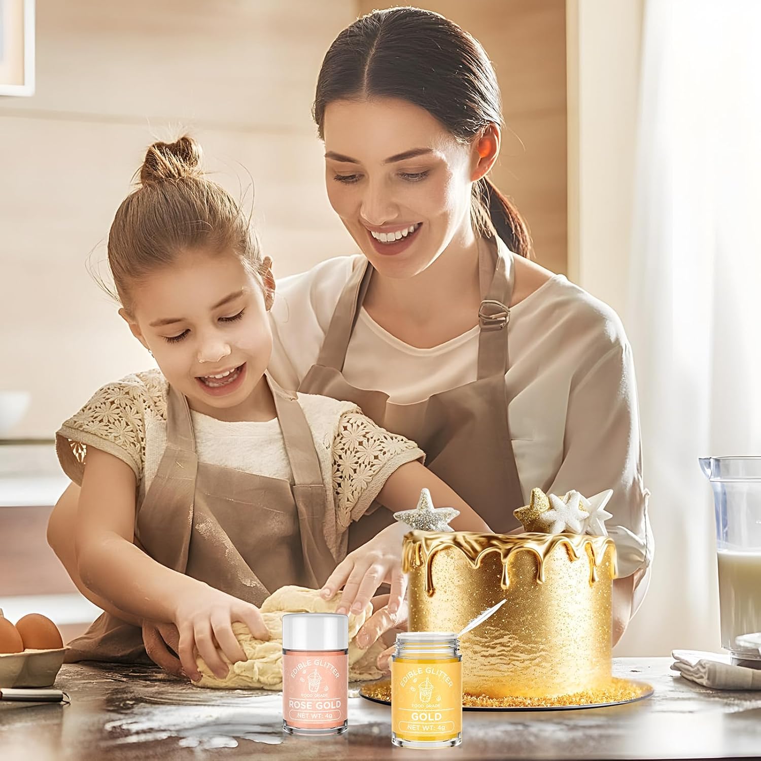 Cherrysea Edible Glitter for Drinks Cocktails Food Grade Edible Drink Shimmer Powder for DIY Champagne Beverages Wine 2 Colors Vegan Edible Luster Dust Set 4g/Bottle Gluten Free - Rosegold & Gold