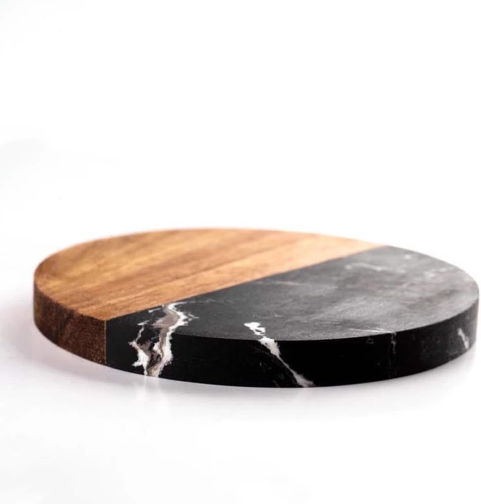 - VERSATILE MARBLE & WOOD COASTER: These coasters are wood and black mixed marble,made of marble and natural wood.The round coaster size is 3.9"x3.9"x0.5",this size works for almost all drinks.It can be applied to your tea cup,coffee cup,beer mug,glass cup,wine glass, and more others.