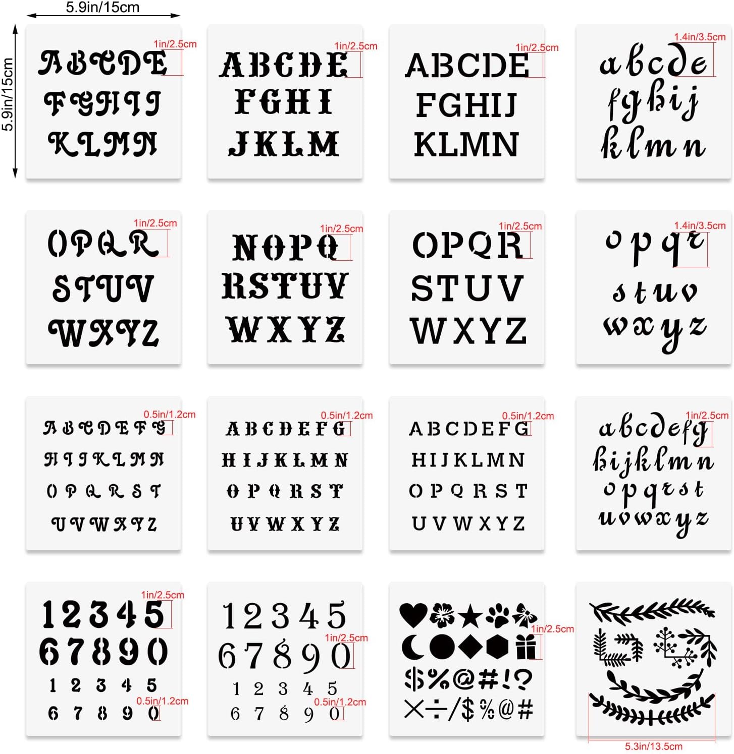 - Styles for Every Project: Get 16 stencils, including 12 different letter styles, 2 number stencils, and 2 packs of cool shapes. Perfect for cakes, cookies, wood crafts, signs, and more. Different fonts and sizes to suit all your creative needs.