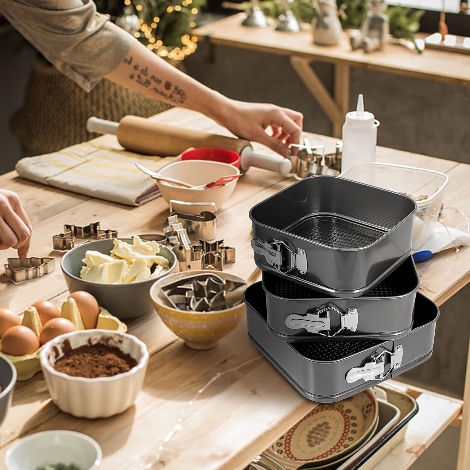 Springform Cake Pan Set of 3 (9.5, 10, 11 Inch) Square Baking Pans Nonstick Cheesecake Pans with Removable Bottom Bakeware for Cake, Cheesecakes, Pizza, and Quiches