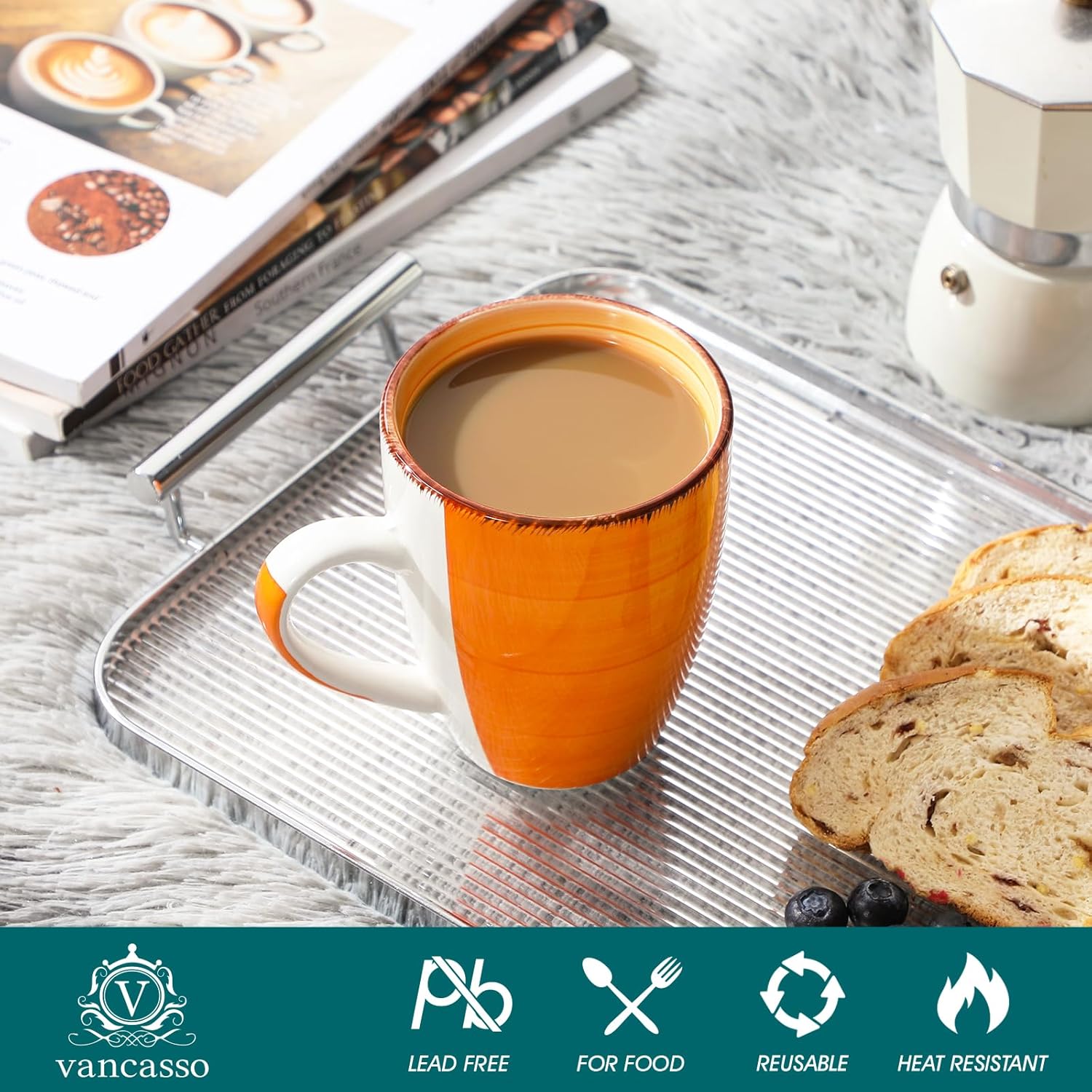 vancasso Bonita 16 Oz Large Coffee Mugs Set of 6, Ceramic Coffee Cups for Cappuccino, Latte, Tea, Cocoa, Warm Color