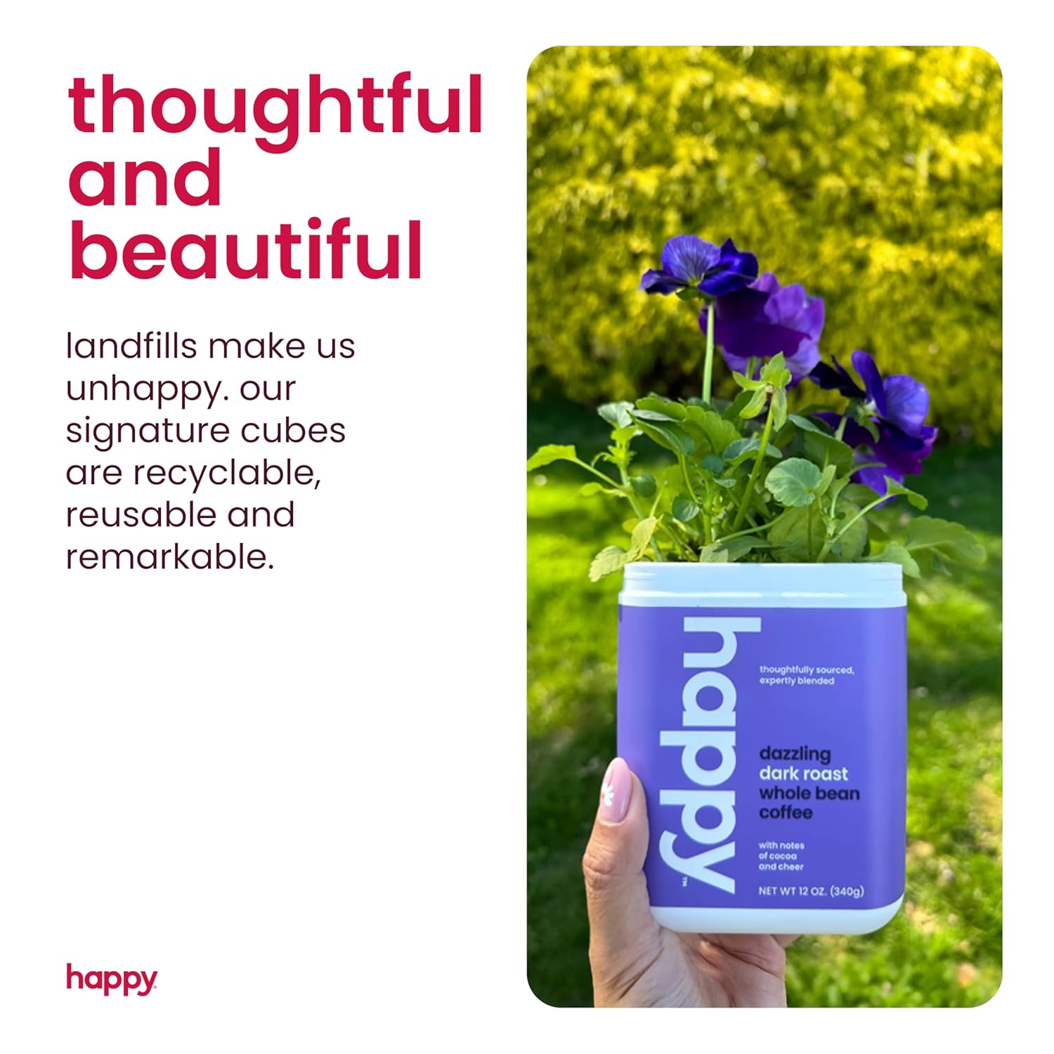 - seriously delicious: start your morning off right with happy’s miraculous medium roast coffee pods, thoughtfully sourced and expertly blended with notes of chocolate and confidence.