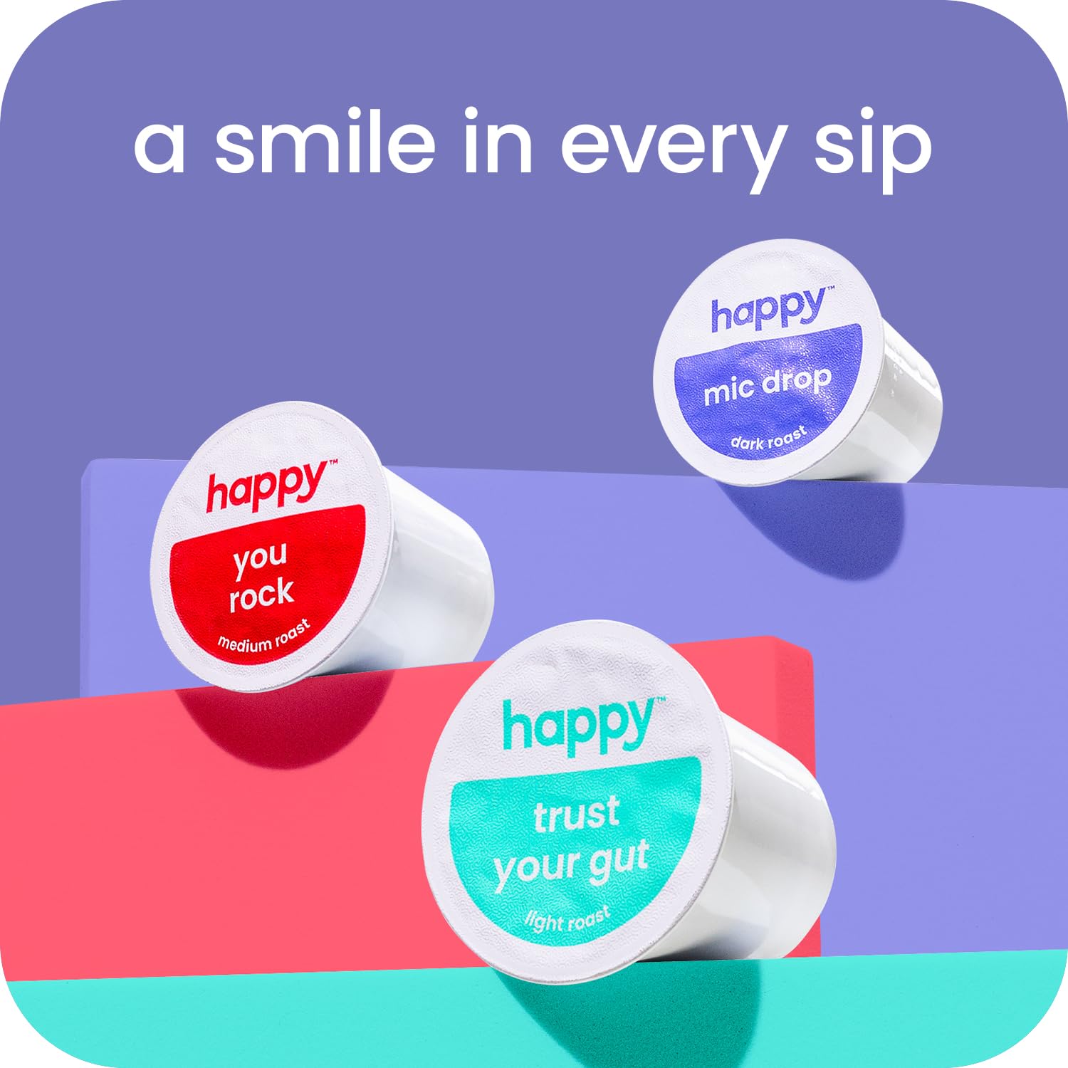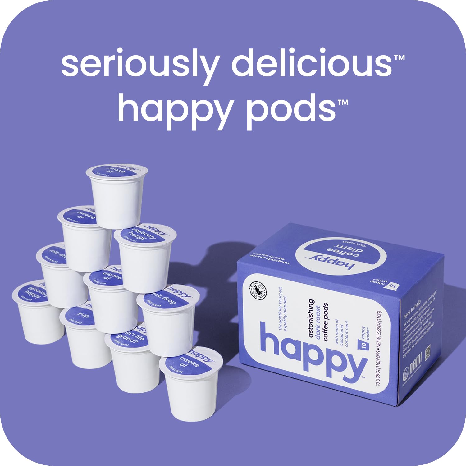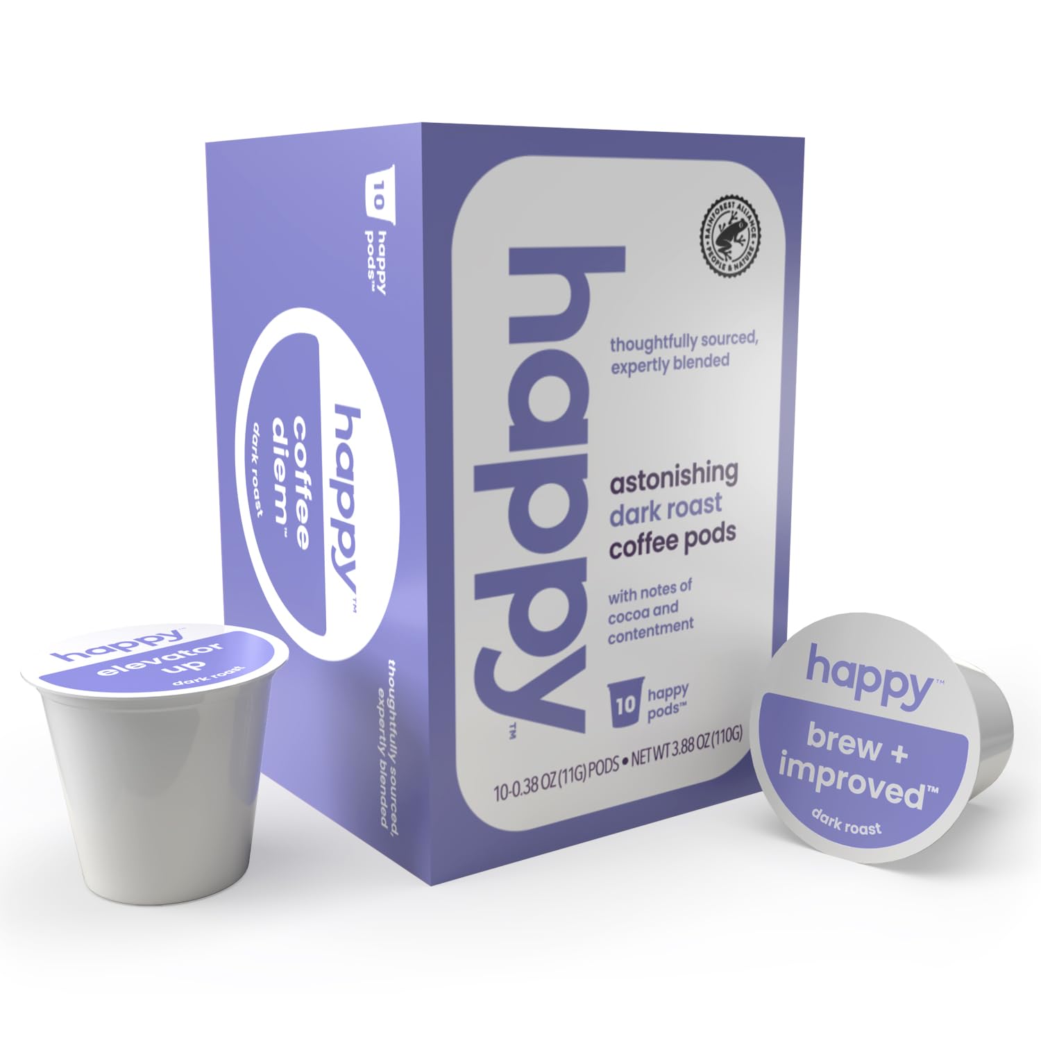 - seriously delicious: start your morning off right with happy’s astonishing dark roast coffee pods, thoughtfully sourced and expertly blended with notes of cocoa and contentment.
