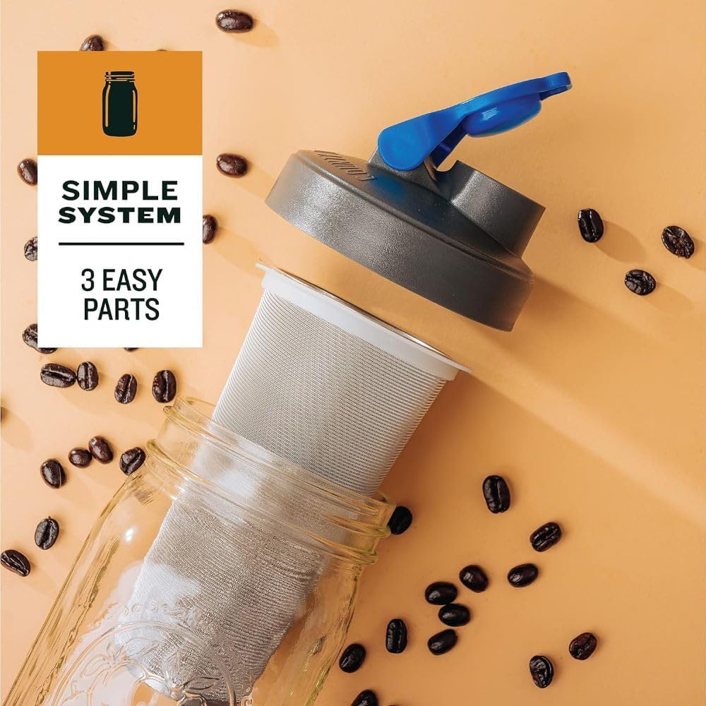 - INCLUDES MESH STAINLESS STEEL FILTER: Say goodbye to stray coffee grounds in your drink! Equipped with a top-notch filtration system, our high-quality mesh prevents coffee grounds from entering the jar - ensuring a smooth, clean brew every time. Ideal for making all types of beverages, including tea, its compatibility with various coffee grounds makes it a versatile addition to your kitchen