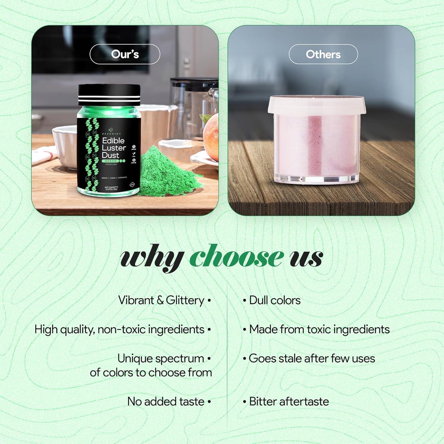 BeePoint Green Edible Luster Dust 15g - Food Grade, Vibrant Color Shimmer Powdered Dust for Drinks, Cocktails, Cake Decorating, Baking, Chocolates, Candy, Sweets, & Cookies - Vegan & Gluten Free