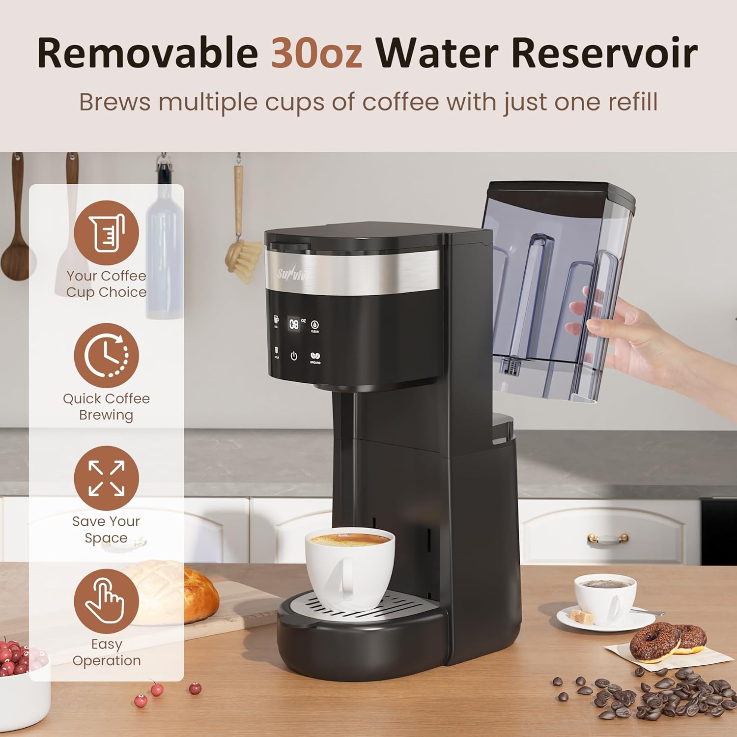 - 🍵【3-in-1 Brew, Limitless Flavor】 Experience the versatility of this coffee maker, boasting a reusable filter basket and K cup capsule holder. From traditional coffee powder to convenient capsules, and even tea, it adapts seamlessly to your diverse taste preferences. Enjoy a wide variety of drinks for an unmatched experience.