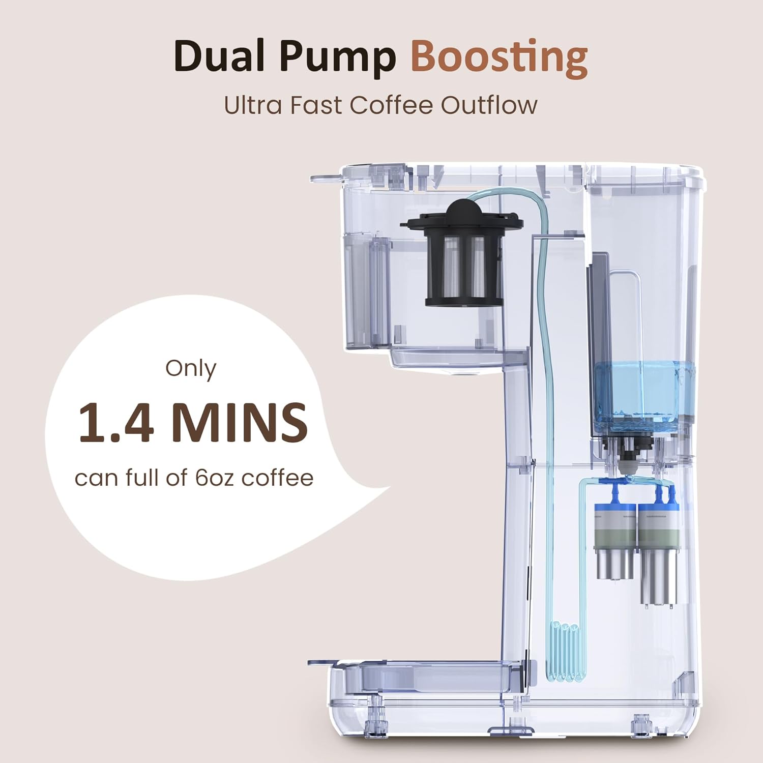 - 🍵【30oz Reservoir, Your Cup Choice】 With a 30oz spacious water reservoir, effortlessly brews multiple cups of coffee with just one refill, catering perfectly to various needs. Offering 6-14oz capacities to customize your cup choice and indulge in the rich flavor of coffee in just 90 seconds, enjoy a swift and flavorful brew.