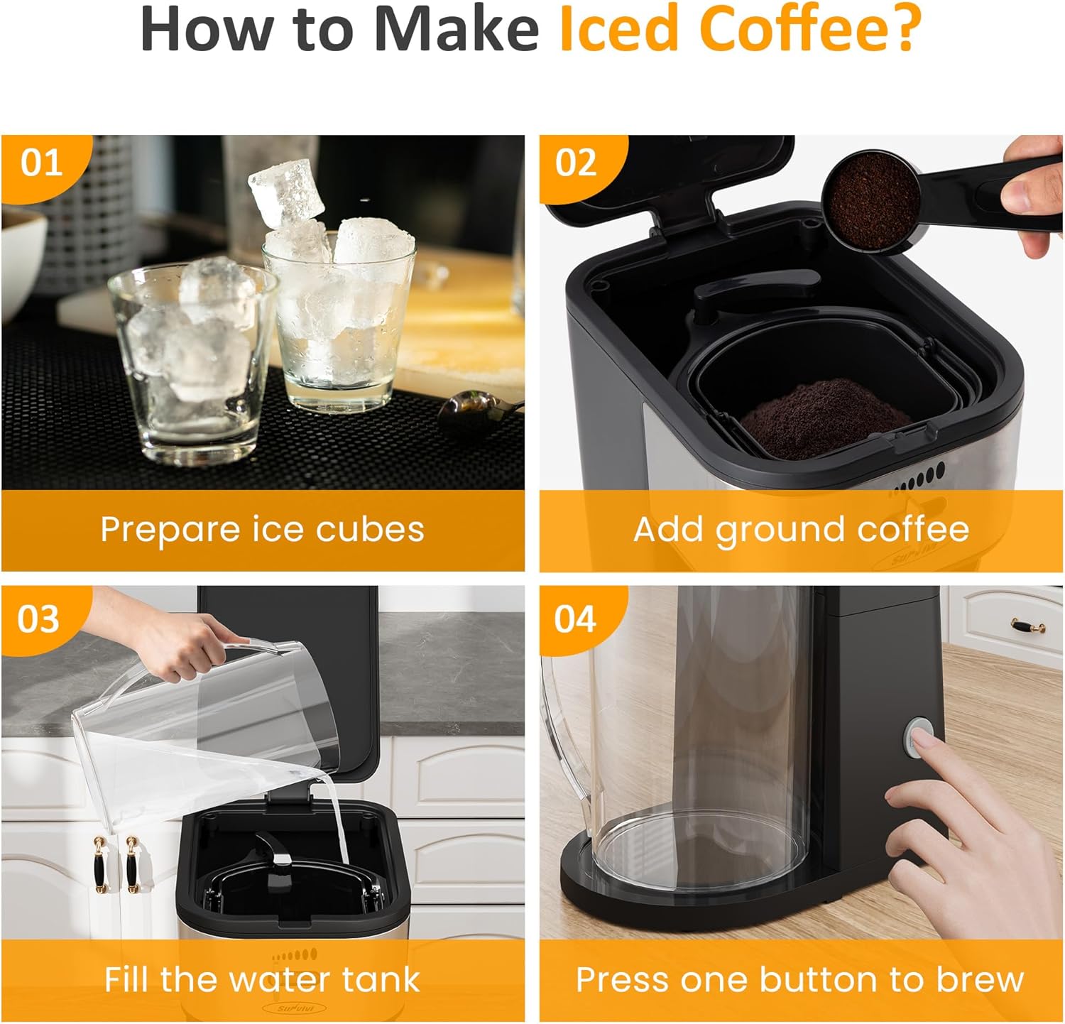 - Reliable Material: Crafted with great-quality pla-stic material, the iced coffee machine and pitcher are strong and not easy to break, and more practical than glass material. It has a certain heat resistance, and both cold and hot drinks can bear.
