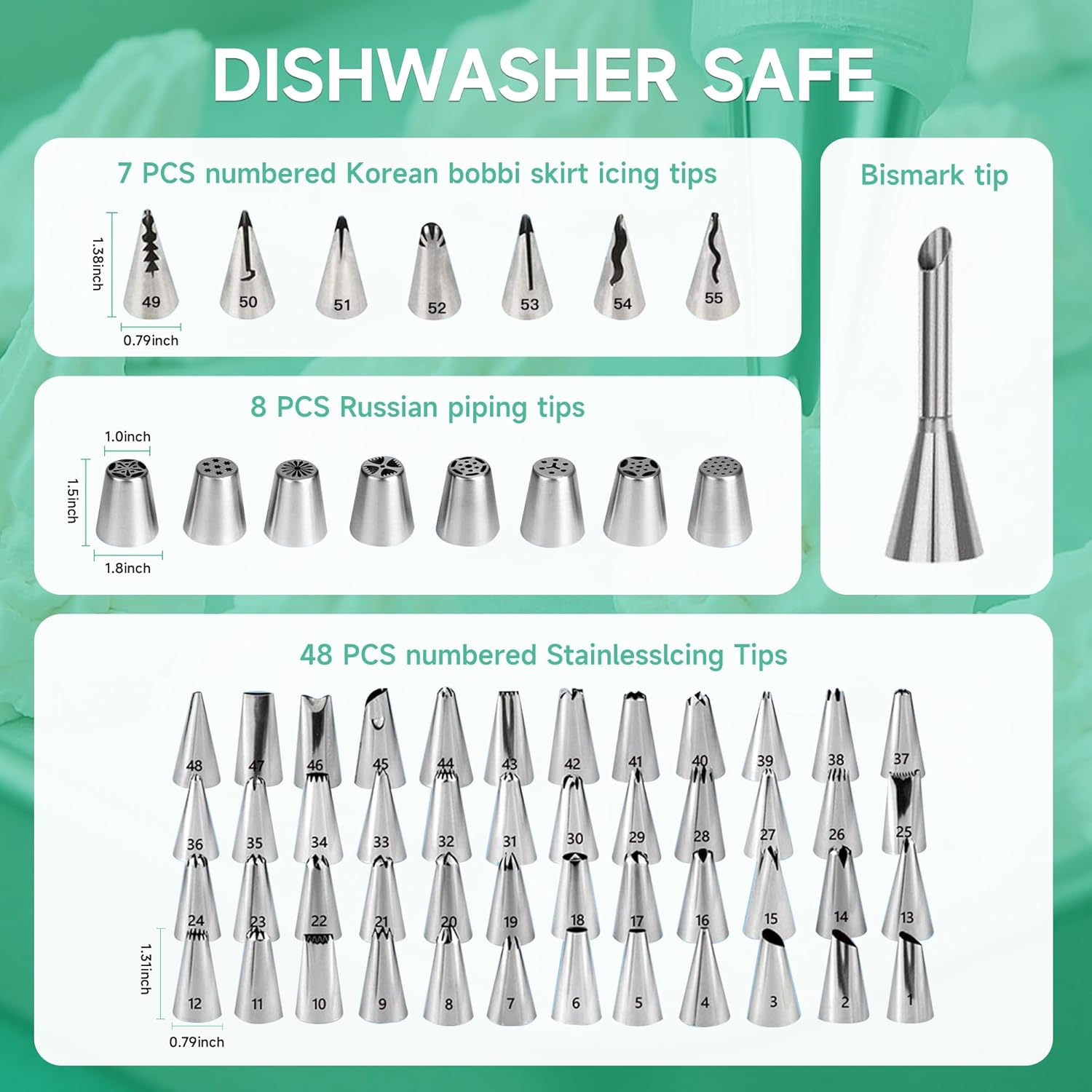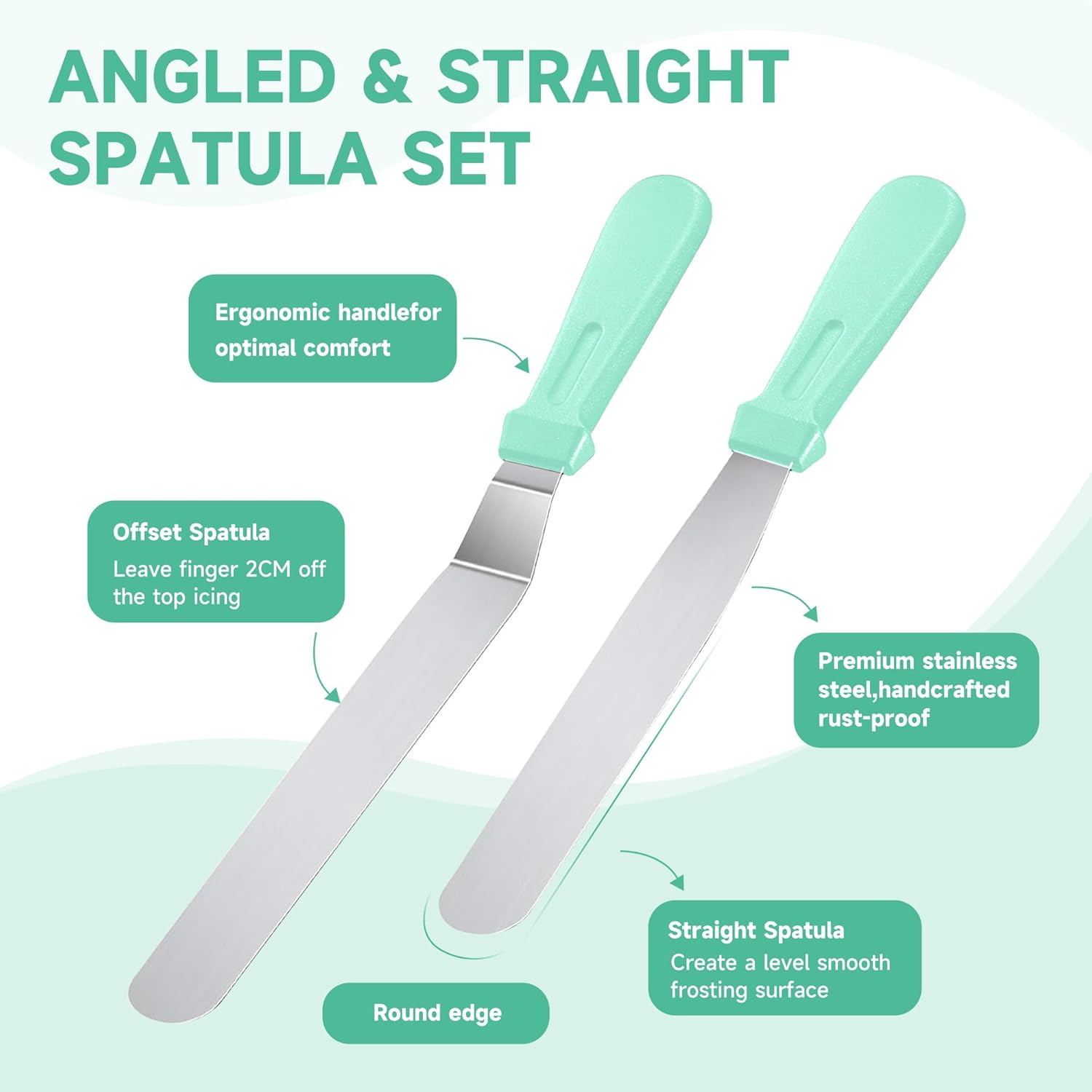 Cake Decorating Kit,137pcs Cake Decorating Supplies with Cake Turntable for Decorating,Pastry Piping Bag,Russian Piping Tips Baking Tools, Cake Baking Supplies for Beginners(Green)