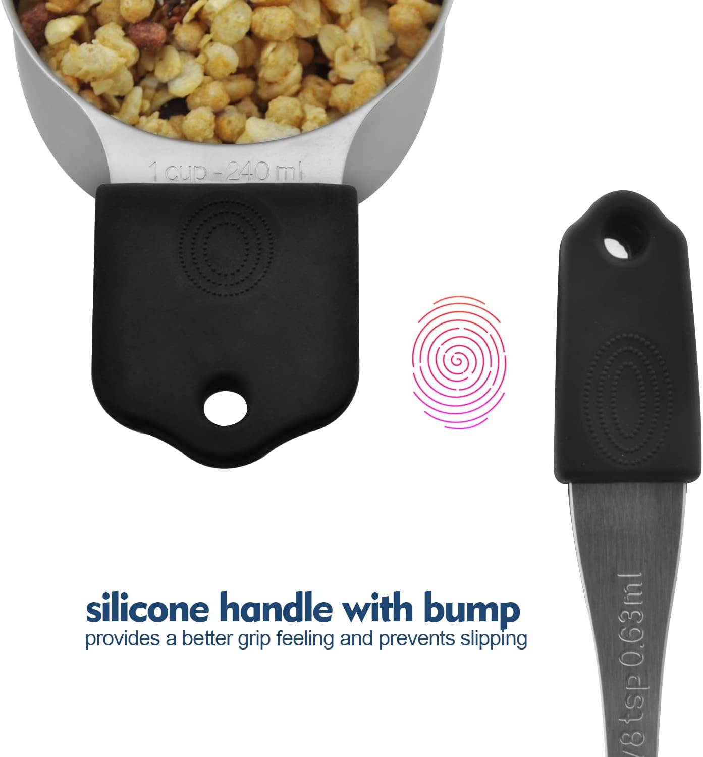 Magnetic Measuring Cups Set, 7 Pieces 18/8 Stainless Steel Stackable Nesting Heavy Duty Metal Measure Cups, Color Silicone Handle Kitchen Tools for Dry and Liquid Ingredients (14, Black)