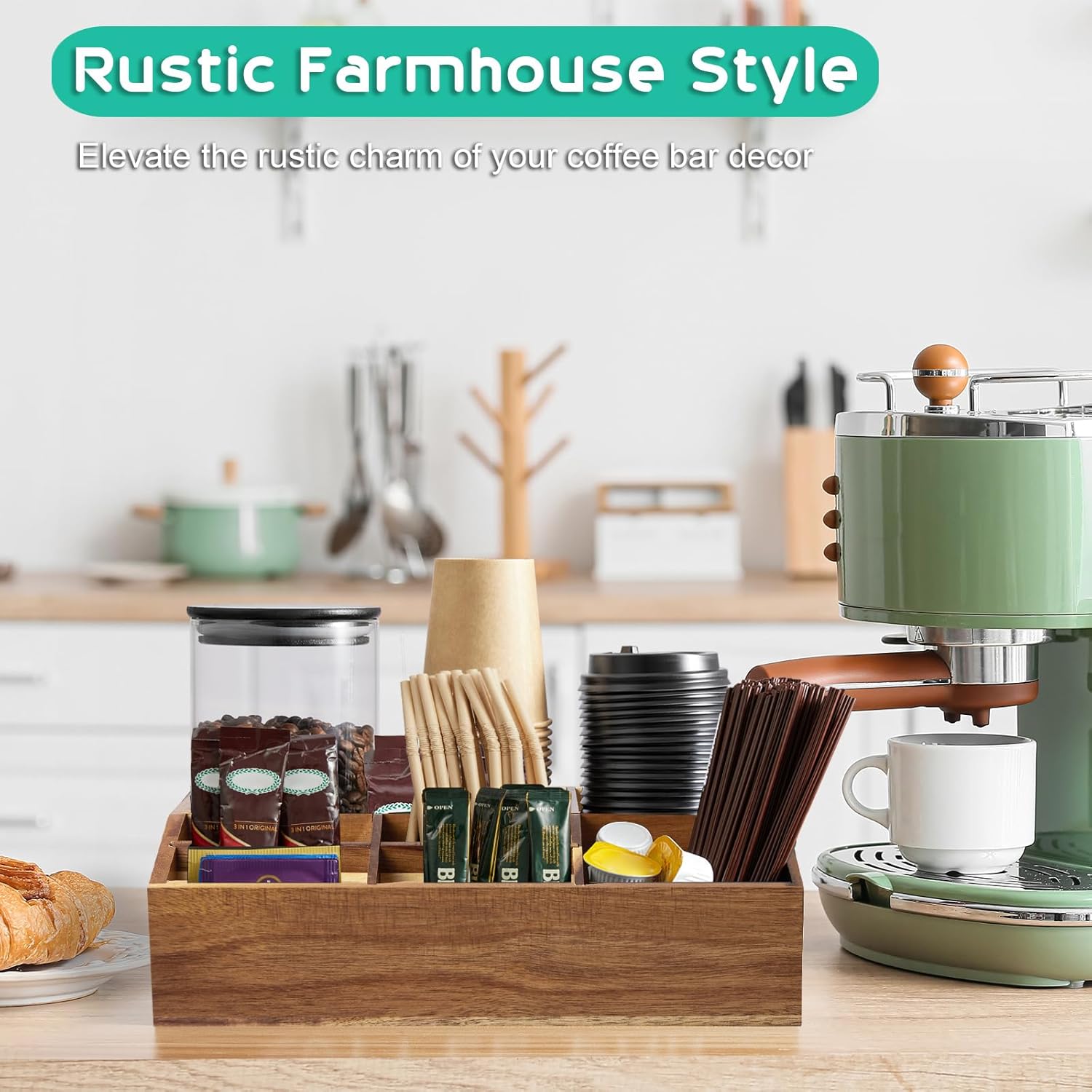 - Durable and Long-lasting - Our coffee organizer is made from premium acacia wood, designed to endure daily use. Its robust structure ensures durability, offering a reliable and long-lasting solution for organizing coffee table accessories on any countertop.