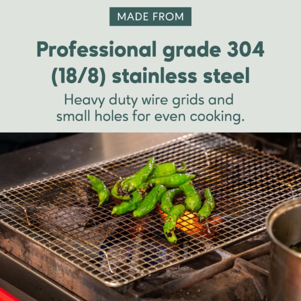 - DISHWASHER-SAFE AND EASY TO CLEAN: Our cooking racks are made of 100% stainless steel, ensuring easy cleaning and dishwasher safety. They are built with superior quality, so you don't have to worry about rust or chrome flaking off into your food