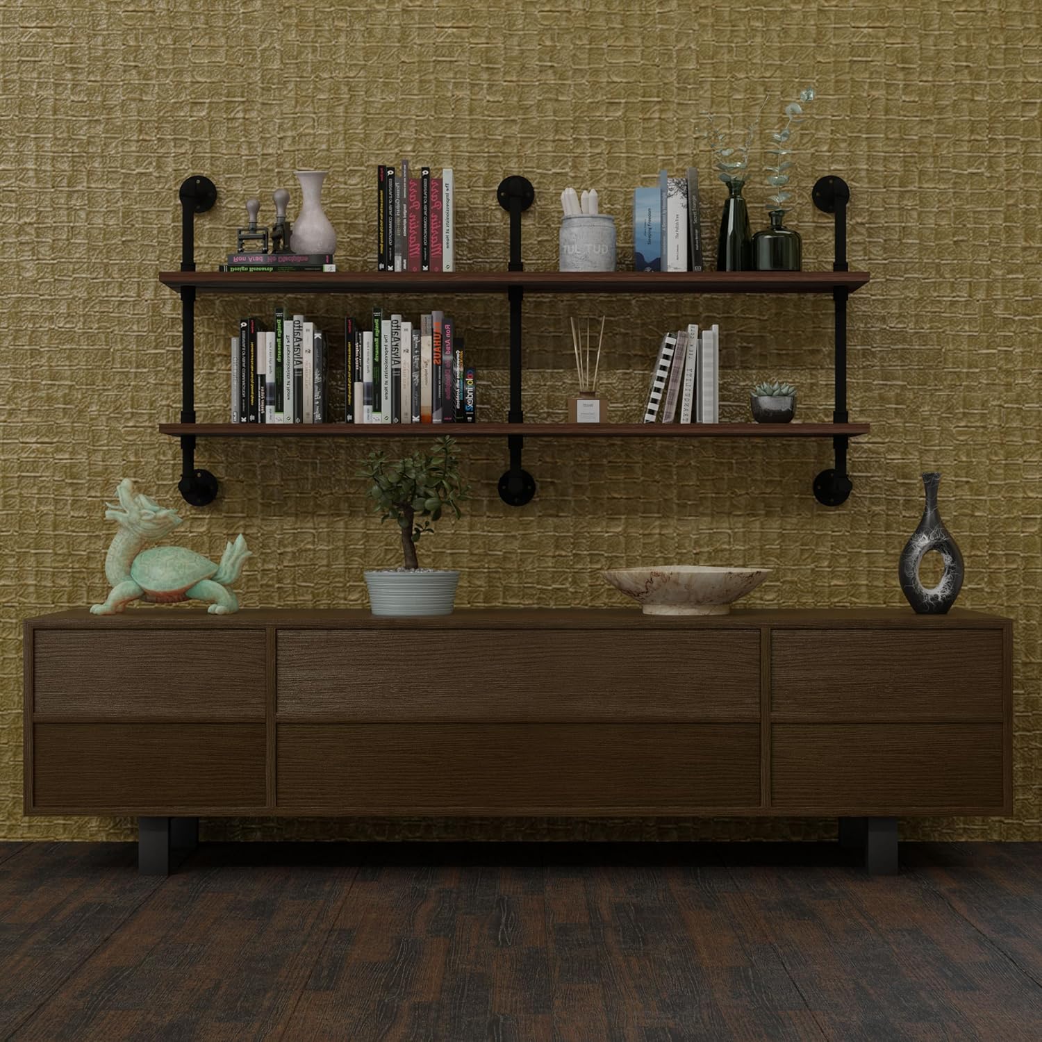 - ăMultiple Place UseăThis 60 inch floating shelves for wall has a unique water pipe design. This long wall shelves can be used as a kitchen rack to place oil and salt sauce cans, as a floating bookshelves for wall in the farmhouse or living room or as wine rack in the bar.,any other where you want to install.