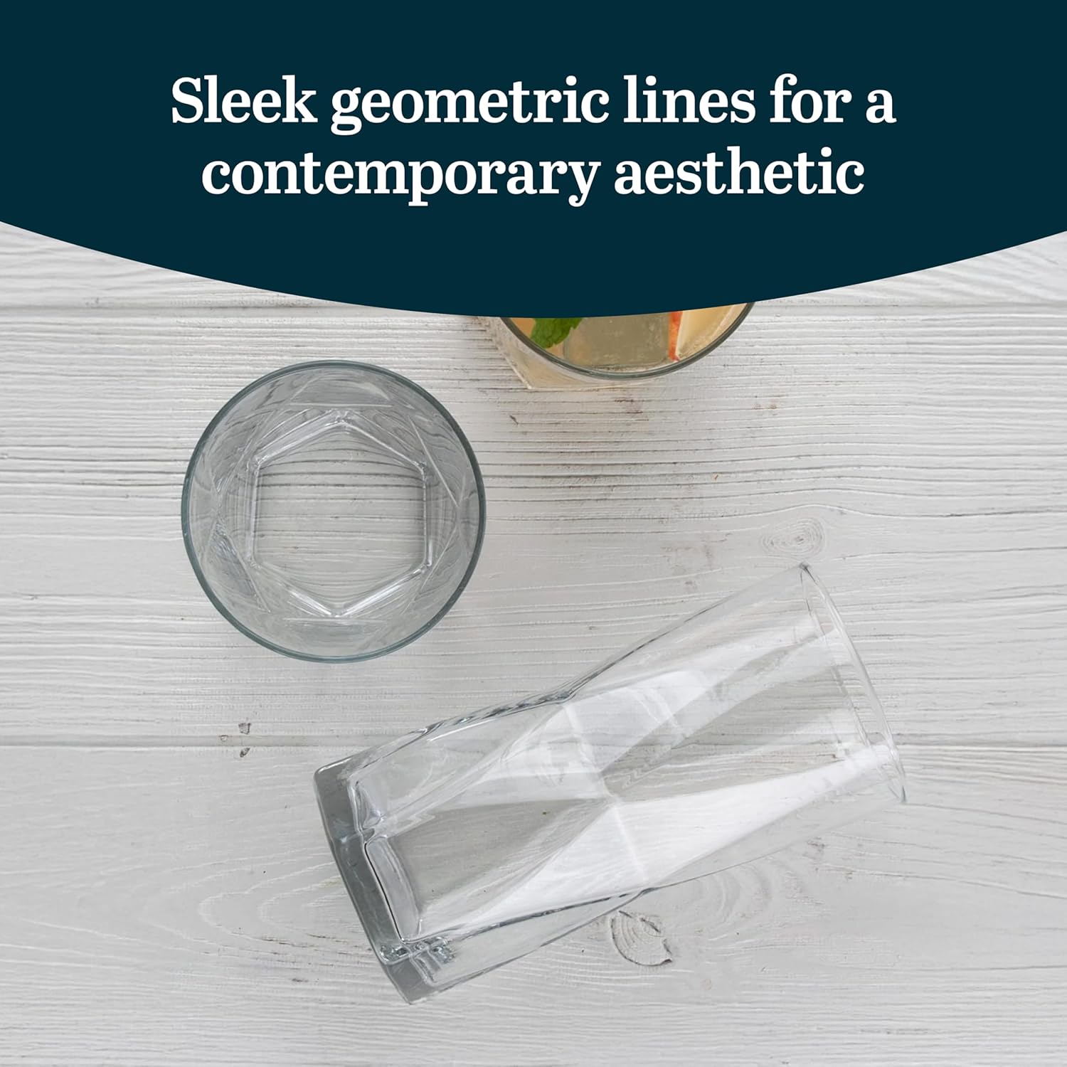 - Fun Geometric Design: Crafted from premium quality glass, these everyday drinking glasses feature sleek geometric lines for a contemporary and cutting-edge aesthetic; the ergonomic build of these kitchen glasses makes them easy to hold