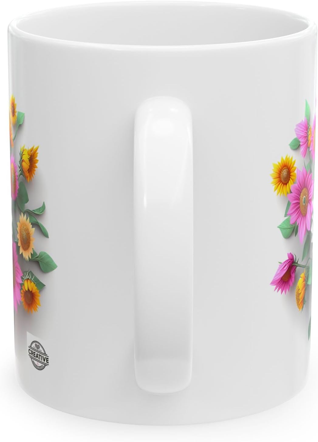 11 OZ Novelty Coffee Mugs - Christmas Gift (3-D Flower Ceramic Mug)